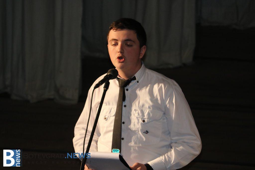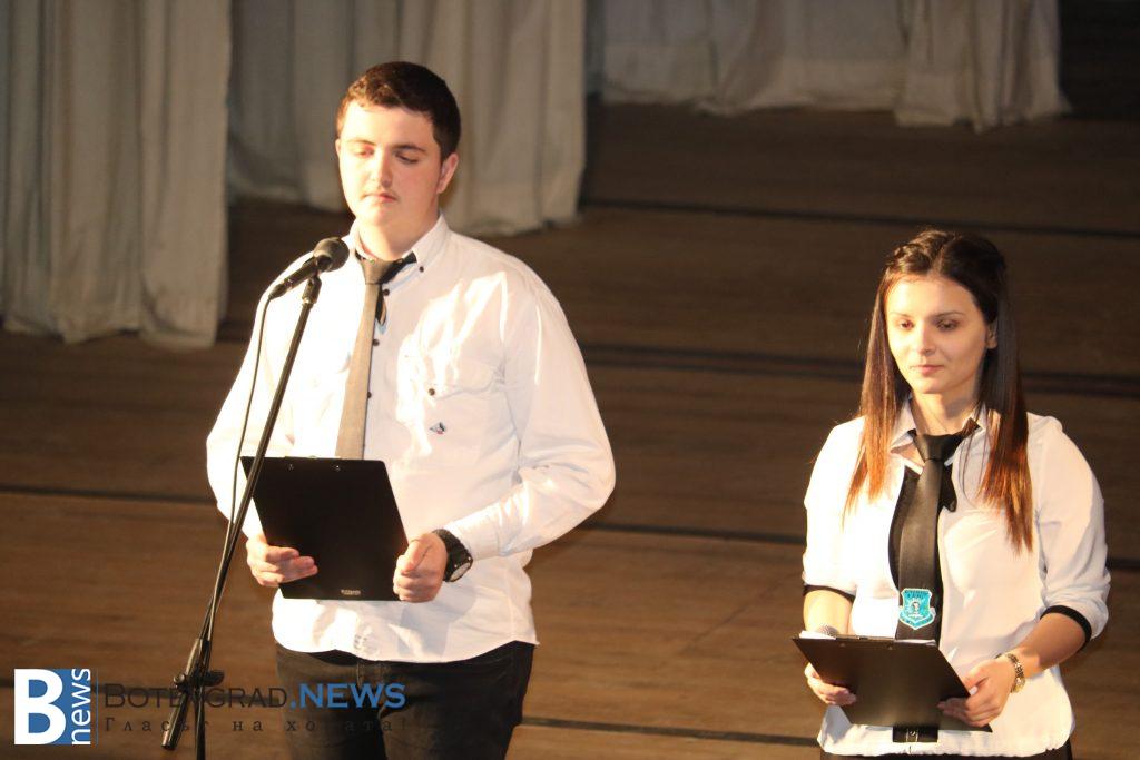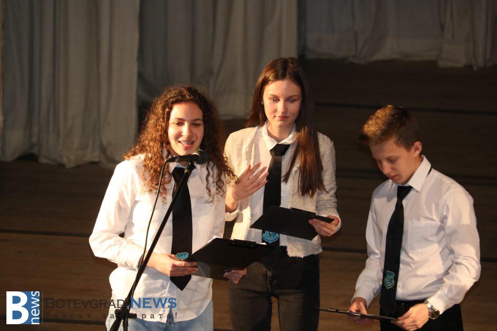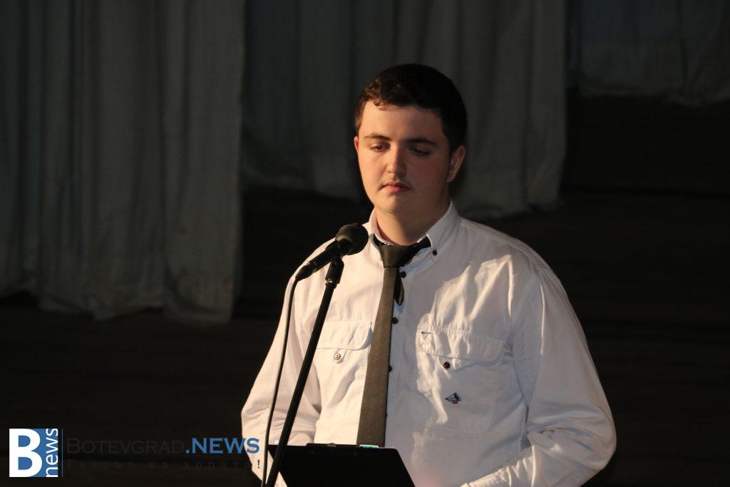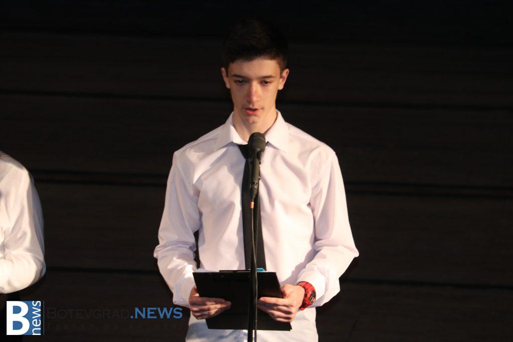 Владимир Колев изрази своята гордост, че е горд от училището, което като е член на Асоциацията на Кеймбридж училищата в България. Към учителите той се обърна с думите, че техният труд променя живота на хората. „Сигурен съм, че сред вас има много млади хора,  с които един ден Ботевград и цяла България ще се гордее“, каза Колев. Към учениците той се обърна с призива – „ Не забравяйте и не вярвайте на тези, които ви казват, че не можете да промените света. Напротив  – аз съм сигурен, че точно вие можете да го направите и, че утре пред Вас ще се отворят най-големите врати на Европа, Америка и целия свят. Единственото, което искам да запомните е, че България има нужда от вас и където и да докажете знанията си, върнете се отново в България, защото тук в вашето място и тук ще тежите най-много“, каза още Владимир Колев