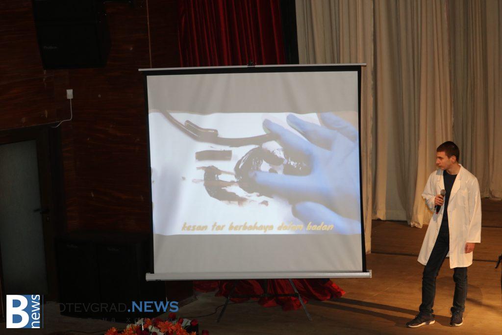 Подобаващото честване на патронния празник показа таланта на ученици с ръководител Теменужка Христова, преподавател по химия, които представиха открития урок „Измамните блаженства“. Публиката имаше възможност да се наслаждава на интерпретацията от вредите и ползите на пороците на нашето съвремие – алкохол, цигари и наркотици. В празничната програма със свои изпълнения се включиха Иванина Иванова, Любомира Вушева, новоформирания фолклорен танцов състав към ППМГ.