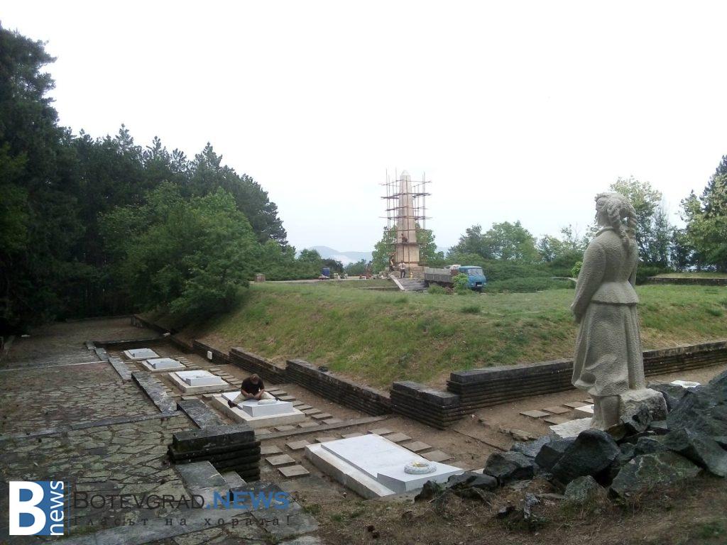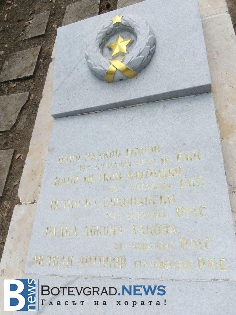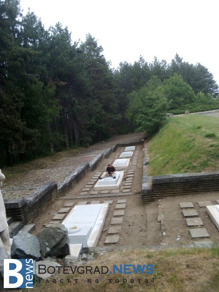 Днес бяха боядисани буквите на паметните плочи с златен феролит, след като преди дни мраморното покритие бе изчистено с водоструйка на вскчи паметни плочи.