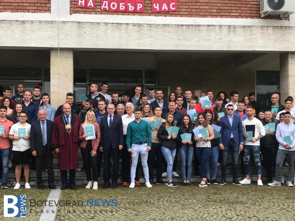 Приветствие към абитуриентите отправи и ректорът на ТУ проф.Кралов. „Ние сме горди, че даваме основите на инженерното образование и креативната мисъл на програмиста още от училищната скамейка. Ще се радваме повечето от вас да продължат своето образование в Техническия университет, където сте добре дошли!“ – подчерта той. Проф. Кралов отправи благодарност и към родителите на випускниците за подкрепата, както и към спомоществователите на училището за направените дарения. След това ректорът лично връчи дипломите на 31 отличници на випуска.