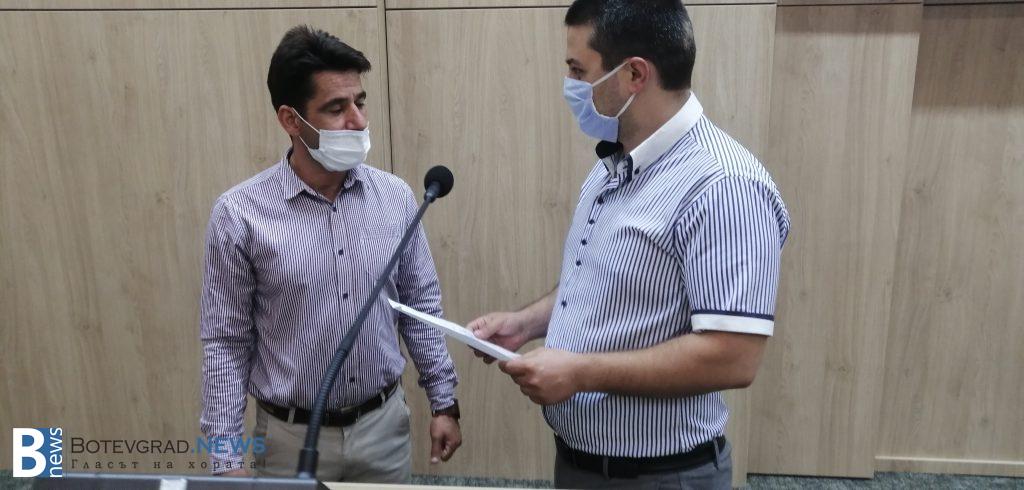 На днешното редовно заседание на Общински съвет Ботевград състава му бе попълнен с нов съветник от групата на ПП МИР – Ангел Ангелов. Той е обявен за избран общински съветник с решение 234 на Общинската избирателна комисия в Ботевград от 4 юни 2020г на овакантеното място от Спасен Ценов.