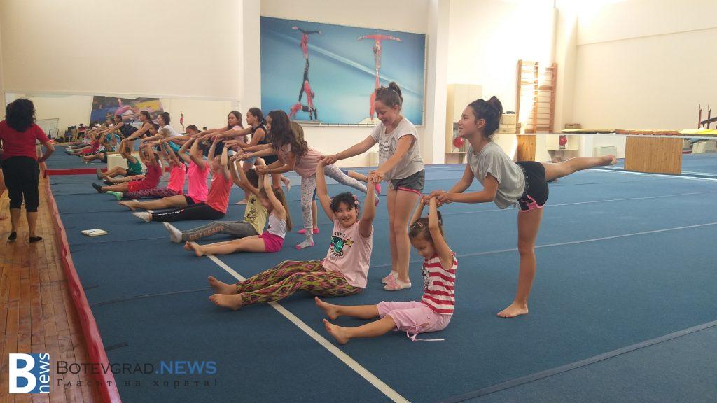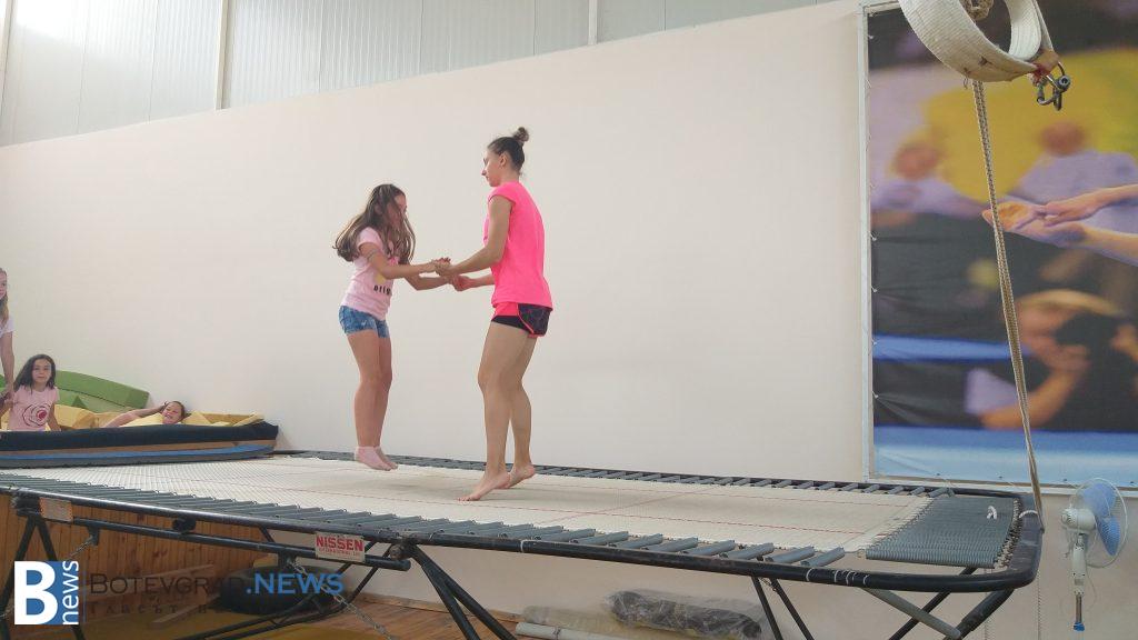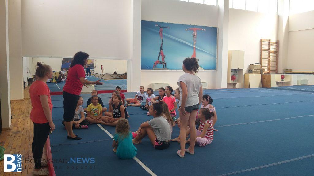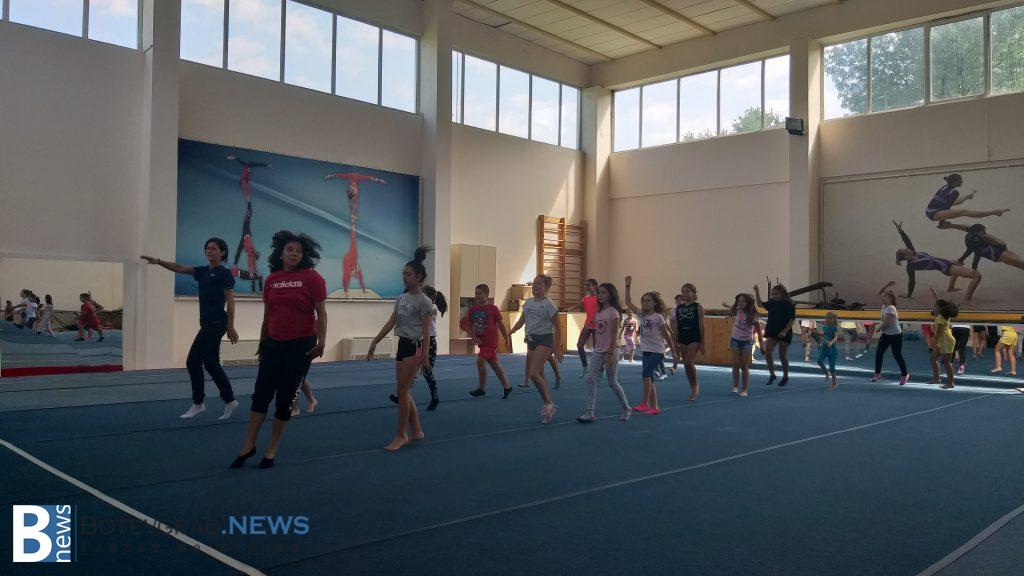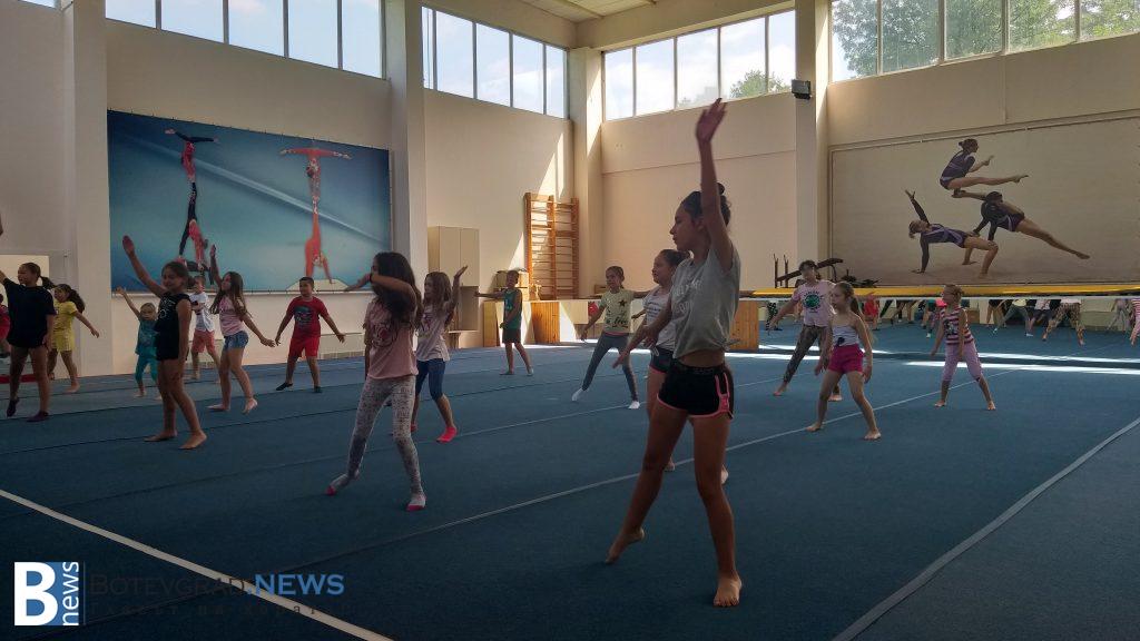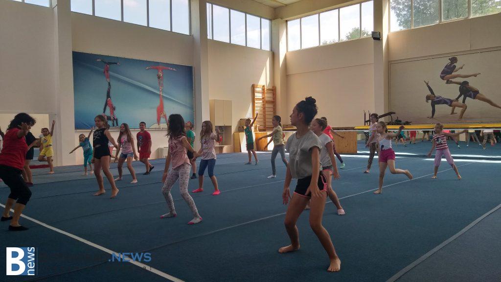 Днес децата, които са част от инициативата „Весело лято в града“ имаха възможността да разберат повече за акробатиката и аеробиката. Малчуганите загряха, танцуваха, опитаха се да направят някои лесни акробатични елементи, изпробваха част от уредите в спротната зала и се състезаваха.