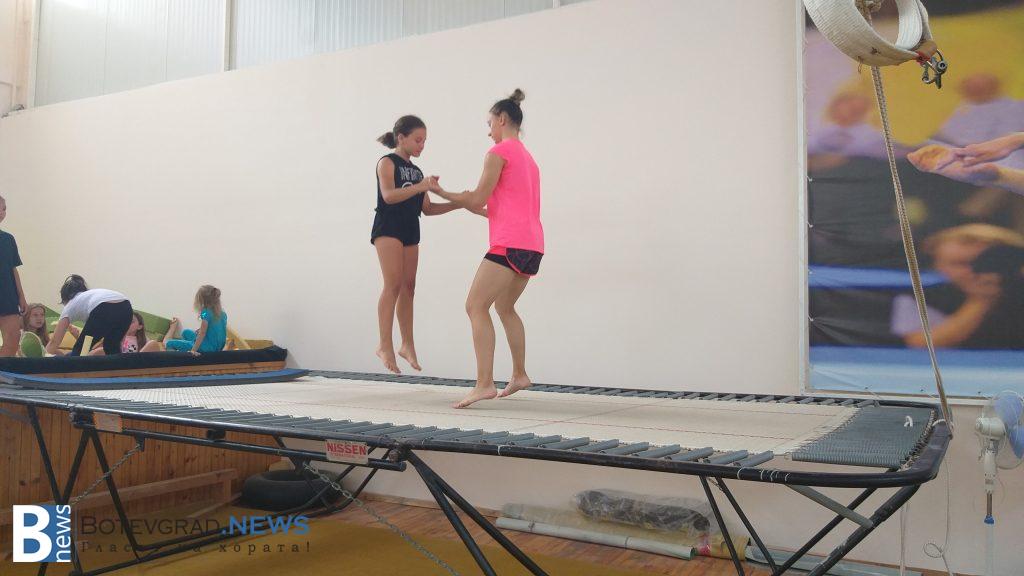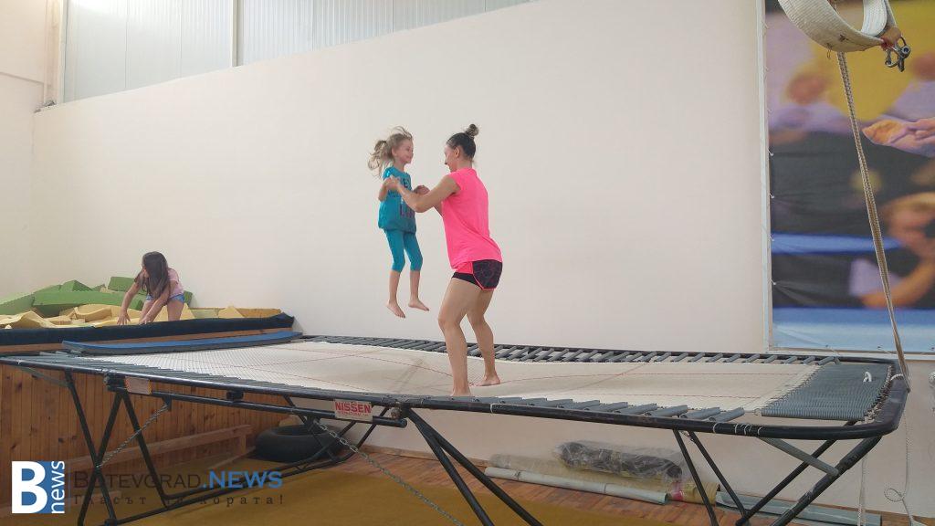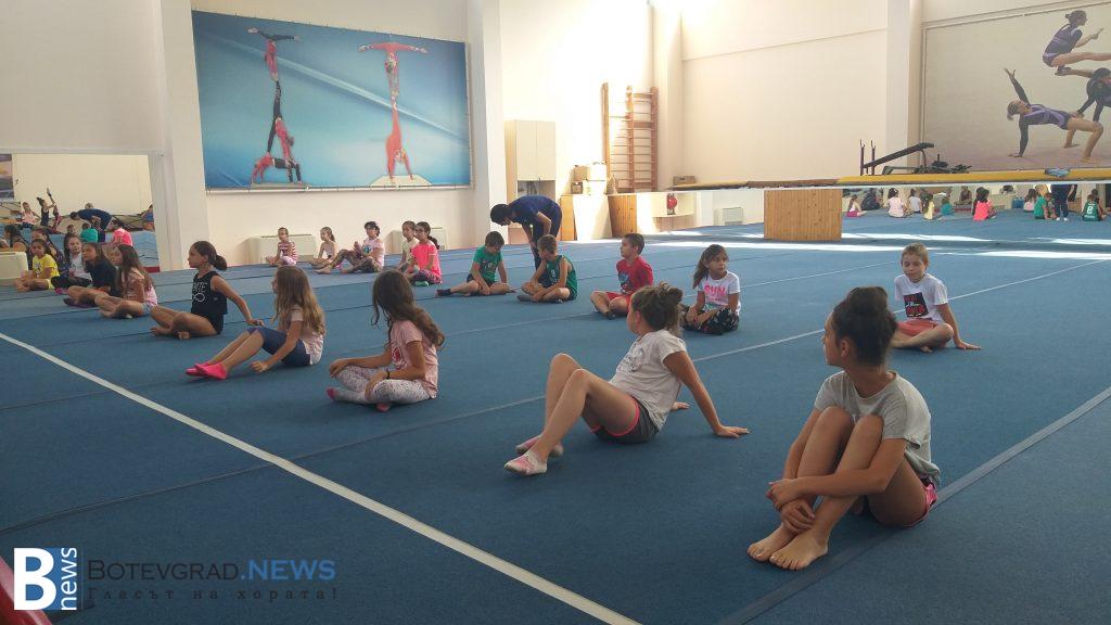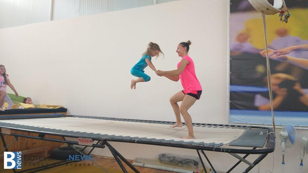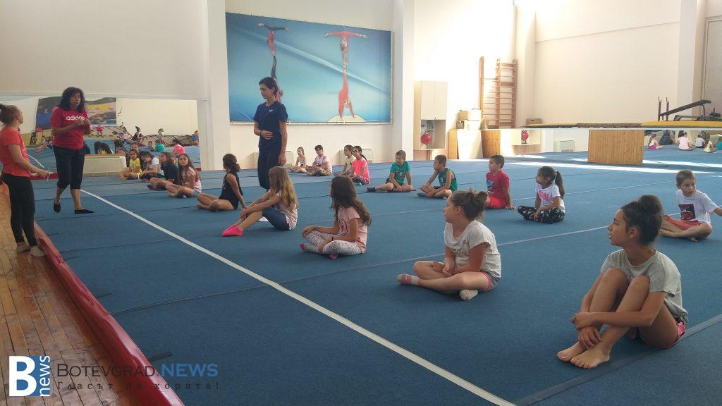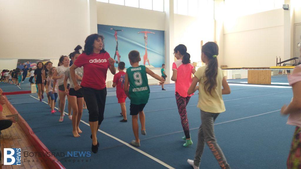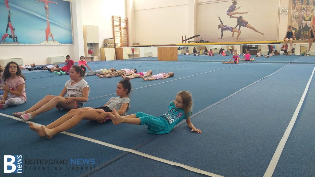 Днес децата, които са част от инициативата „Весело лято в града“ имаха възможността да разберат повече за акробатиката и аеробиката. Малчуганите загряха, танцуваха, опитаха се да направят някои лесни акробатични елементи, изпробваха част от уредите в спротната зала и се състезаваха.