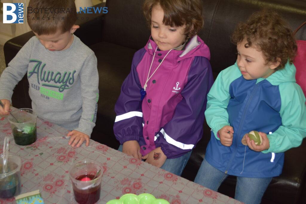 Любопитните малчугани украсиха своите яйца, споделиха какво знаят за празника Великден и се запознаха с различни традиции от нашия край, свъзразни с най-светлия християнски празник! Мероприятието се проведе при спазване на всички противоепидемични мерки, а през целия ден желаещите да боядисат едно Великденско яйце не секнаха.