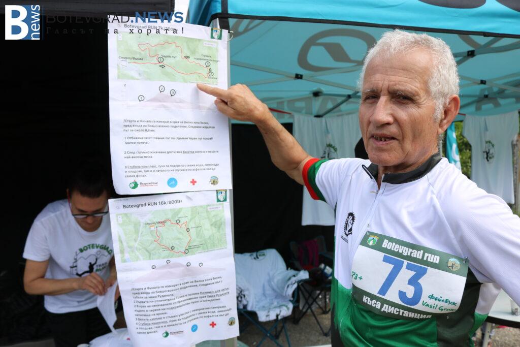„Ботевград е много красив град. Аз лично се влюбих в него. Много ми хареса, особено вилната зона“, това сподели пред репортер на Botevgrad.NEWS Антон Стойчев, минути преди да даде старт на състезанието. Според него бягането помага на човешкия организъм, като развива и укрепва сърцето. “Като остарее човек няма да има никакви проблеми“.
