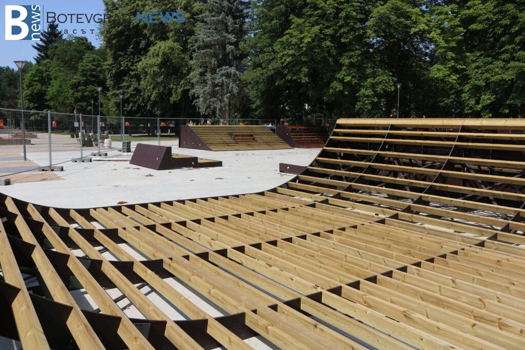 В южната част на Градския парк започна монтажът на скейтборд елементи TIP TIPTAP BАSE, доставени от софийската фирма„Азимут спорт“ ООД.
