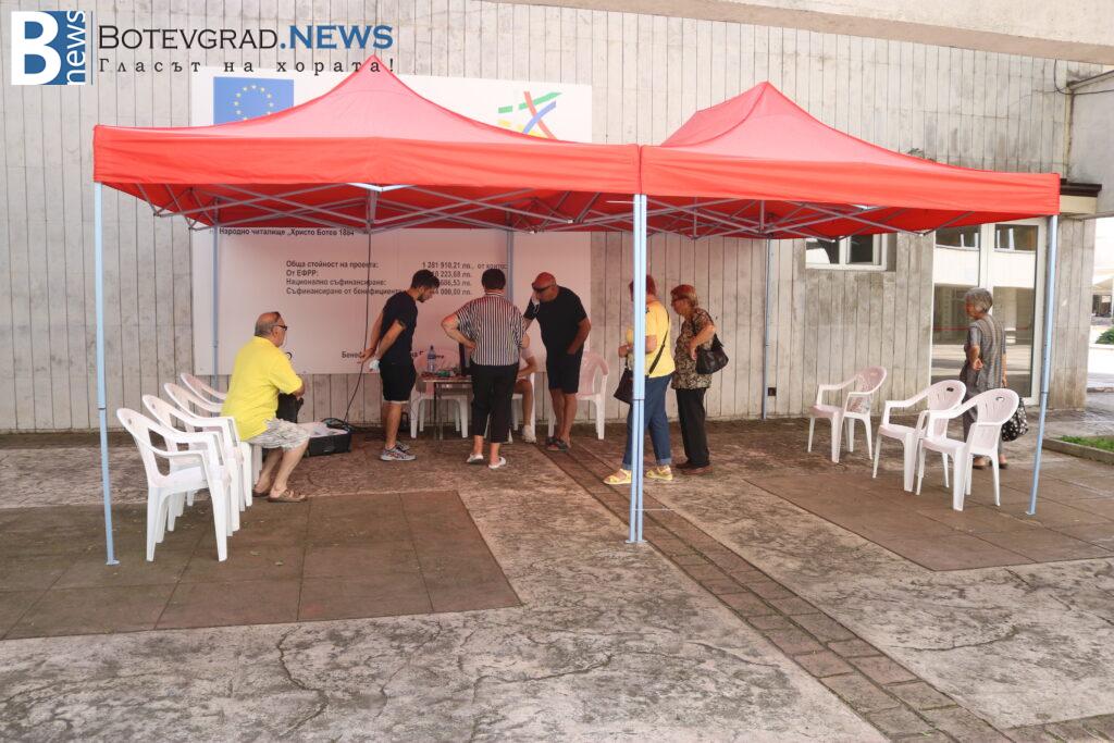 За целта на площадното пространство е разположена шатра. Представител на Сиела Норма АД помага на гражданите с разяснения относно процедурата за гласуване с машина.