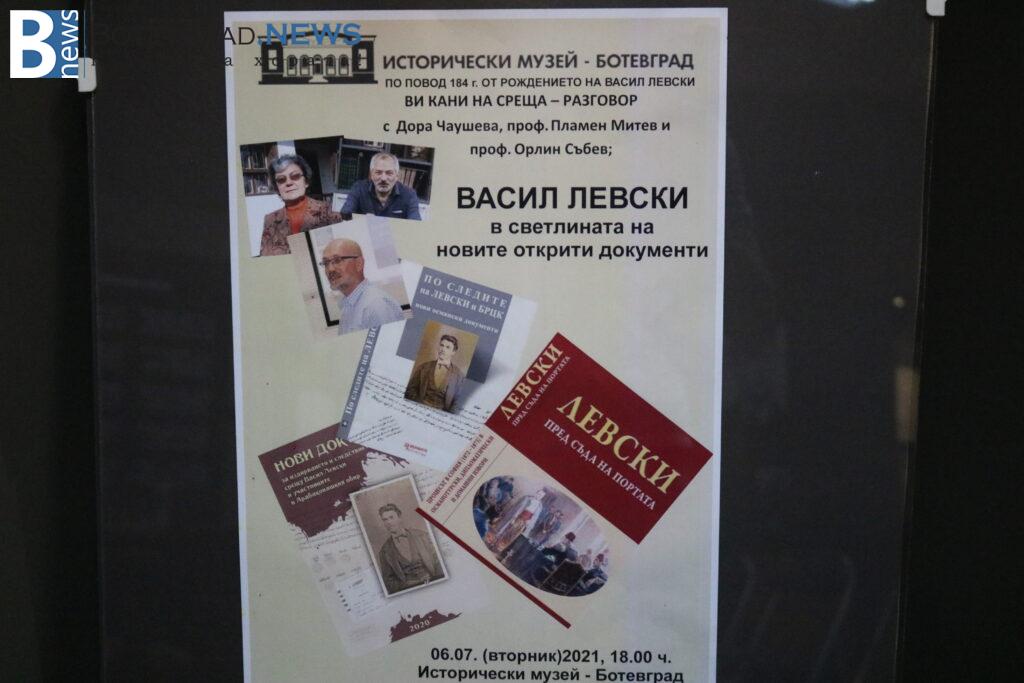 В рамките на организираната среща-разговор пред ботевградската публика бе открита и гостуващата изложба: “ Всичко, което съм сторил, сторих го за отечеството.“ на Национален музей „Васил Левски“ – Карлово. Представени бяха новоиздадени  сборници, събрани въз основа на всички издирени  османотурски, дипломатически документи и домашни извори за съдебния процес срещу Апостола и всички заловени комитетски дейци и участници в Арабаконашкия обир и документи, преведени и анализирани от проф. Орлин Събев.  За първи път се представиха факсимилно султанските укази за утвърждаване на смъртните присъди на Левски и Димитър Общи и нов превод на текста им.
