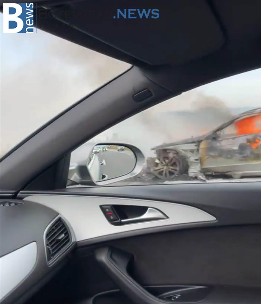 Кола гори на магистрала „Хемус“ (ВИДЕО)