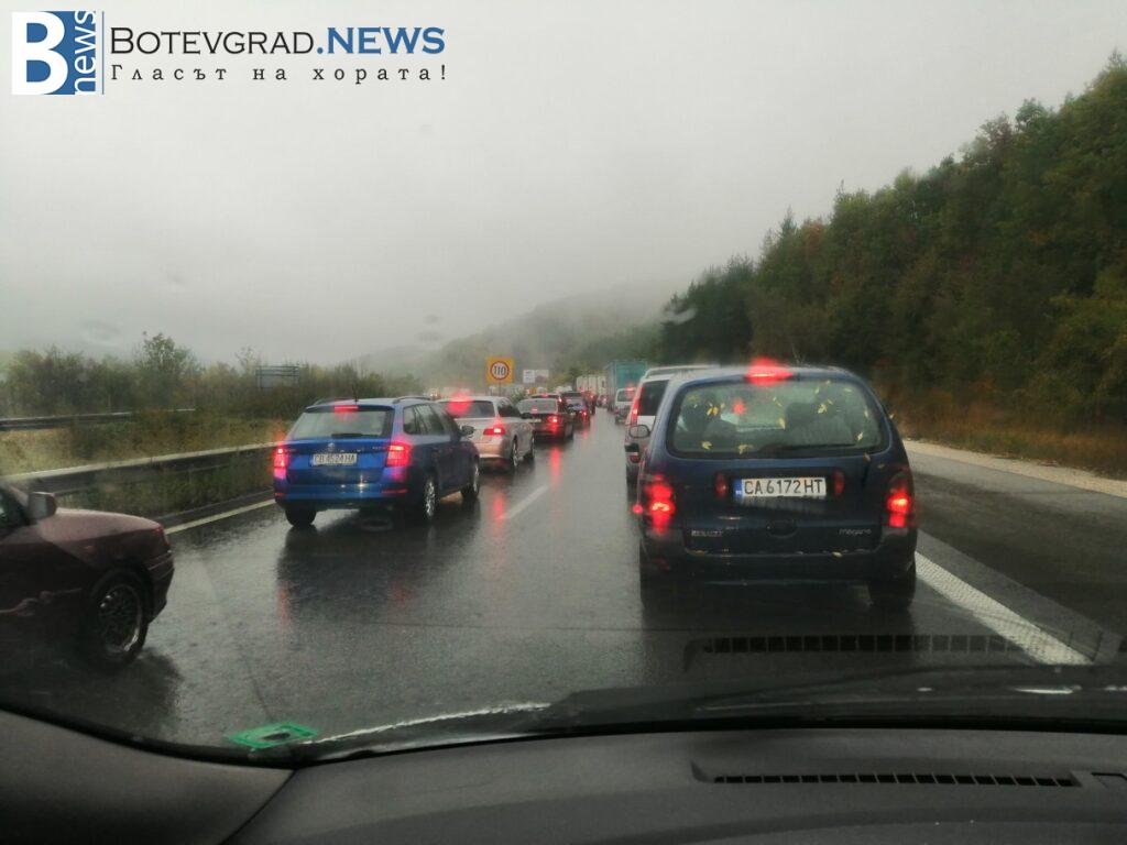 За пореден път в петъчният ден се образува задръстване от автомобили по автомагистрала „Хемус“. Този път тапата е в посока Ботевград между тунелите „Топли дол“ и „Ечемишка“. Заради лошите метеорологични условия пътят е мокър. Шофирайте внимателно!