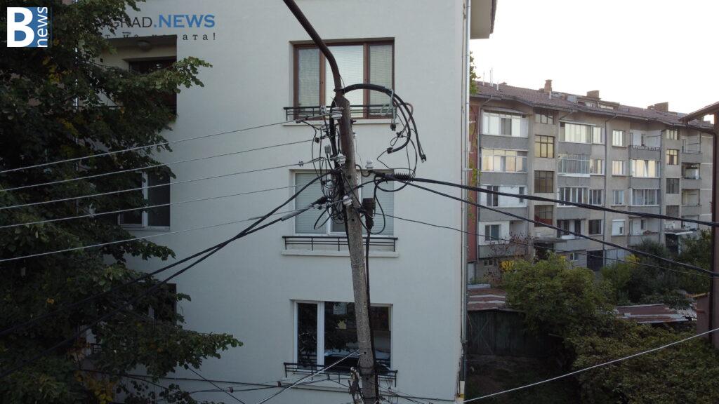 Гласът на хората: Електрически стълб на ул. „Стара планина“ се е наклонил и се крепи на жиците (ВИДЕО)