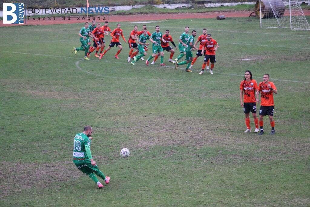 олучи се двуостър двубой, в който не липсваха положения и пред двете врати. Мощен удар на Петър Василев и пропуски на Калоян Бонев, Кристиян Ковачев можеха да дадат аванс на домакините.