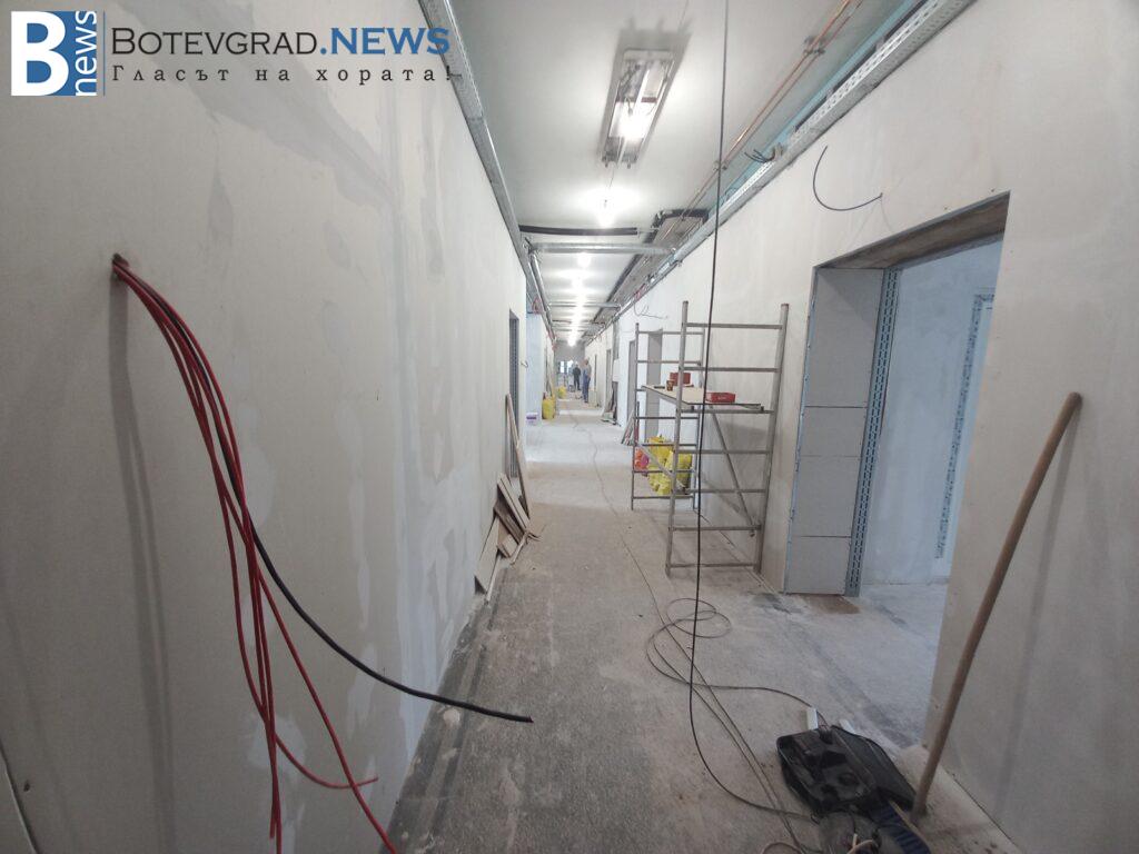Изградени са вентилацията и пожарната инсталация. Всички помещения са покрити с винил по пода и стените, таваните са окачени с растер. Санитарните възли са общо 5, като един от тях ще бъде за пациенти. Лабораторните помещения са с по един приемен кабинет. Предстои монтаж на мебели, които ще бъдат изработени по поръчка, съобщи за Botevgrad.NEWS Николай Недков – организатор „Стопанска дейност“ в МБАЛ-Ботевград.
