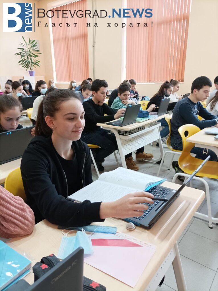 Урокът съчетаваше приложение на високотехнологични устройства- визуализатор, интерактивен дисплей, персонални лаптопи с пишещи устройства и иновативни подходи. Включени бяха практически задачи, екипна работа, приложение Jamboard. Акцент бе подготовката за НВО VII клас. Под умелото ръководство на г- жа Бисерка Петкова учениците актуализираха знанията си за определения, теореми и формули. Показаха висока активност, динамика и много знания. Учениците от този клас имат много медали от състезания и олимпиади.