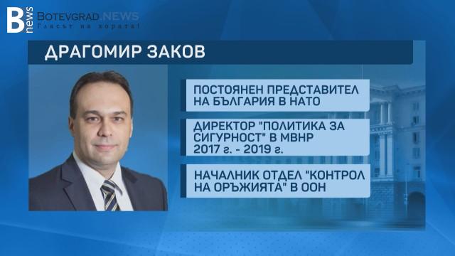 Драгомир Заков е дипломат от кариерата, като последните 20 години е работил на различни дипломатически длъжности в Министерството на външните работи. До момента е постоянен представител на България в НАТО от 2019 г. Завършил е Френската гимназия в София и магистратура по Международни икономически отношения. Специализирал е в Центъра по въпроси на сигурността в Гармиш-Партенкирхен, в Колежа по отбрана и сигурност на Европейския съюз и Женевския център по политика и сигурност.