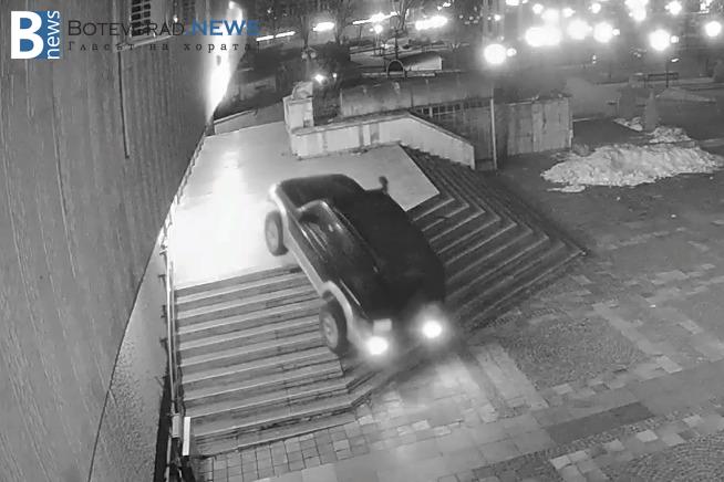 От кадри, заснети от видеокамерите на община Ботевград, се вижда как шофьор на джип се движи необезпокоявано по пешеходната зона на града и дори изкачва стълбите на Младежкия дом, в който се помещава дискотека.