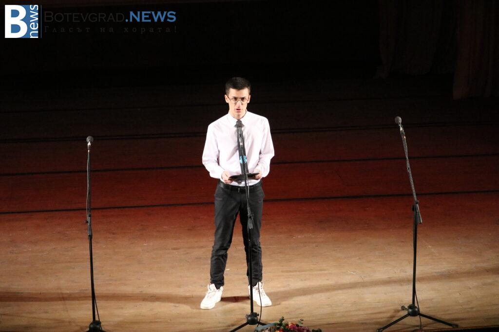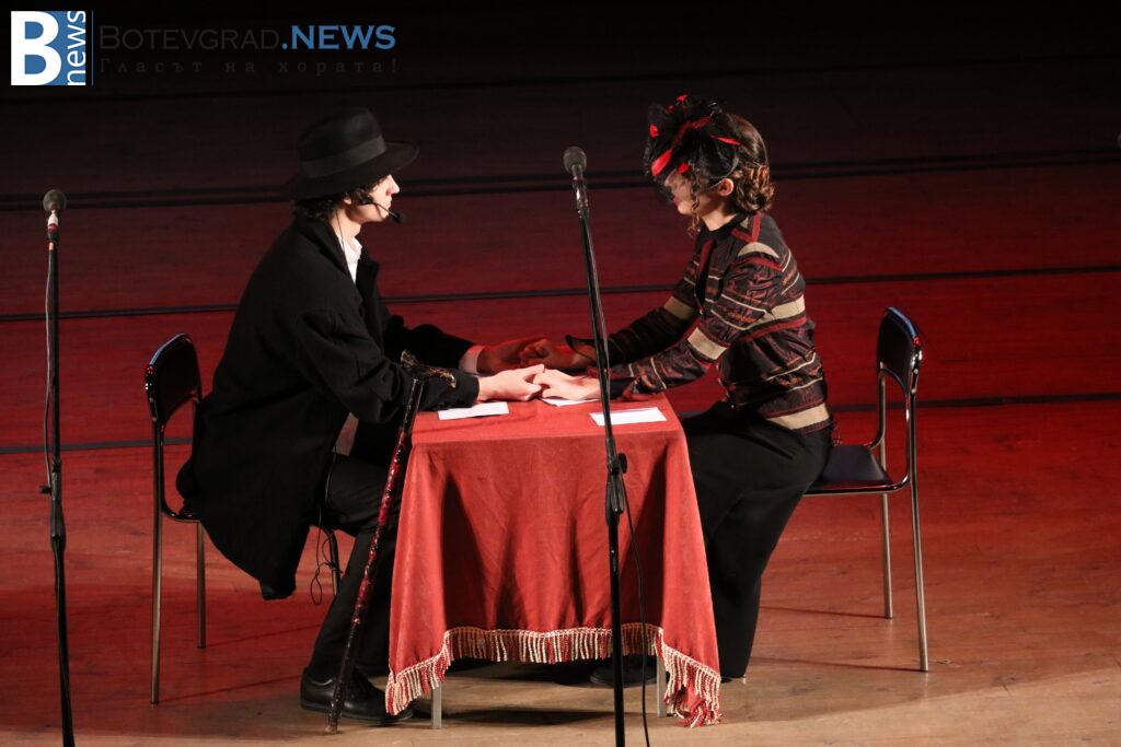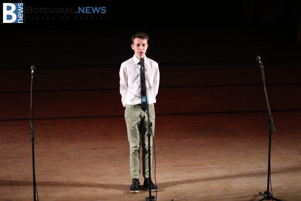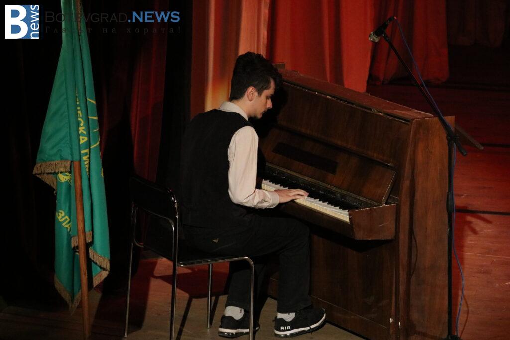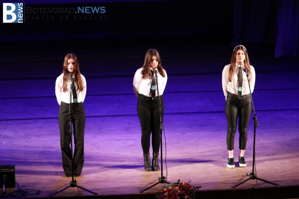 Дойде ред на музикално-поетичният спектакъл, който се проведе в големия салон на НЧ „Христо Ботев 1884“. Той бе открит с традиционно посрещане на училищното знаме.
