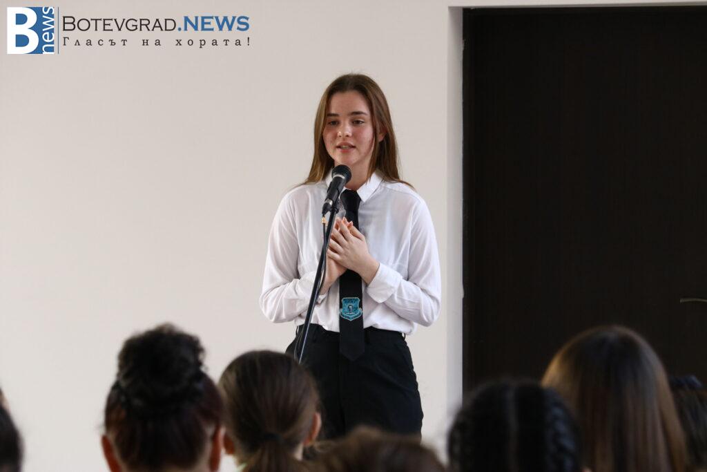 „Скъпи ученици, искам да благодаря на вас, защото в днешния ден вие бяхте нашите герои. Изключително съм щастлива, че идеята, която Община Ботевград инициира в началото на януари, срещна огромна подкрепа от ваша страна. Изобщо не вярвахме, че такъв интерес ще бъде проявен към този конкурс, но въпреки това се радваме, че тази зала днес е пълна и се насладихме на толкова много изключителни изпълнения.„, каза г-жа Граматикова в своето обръщение към учениците.