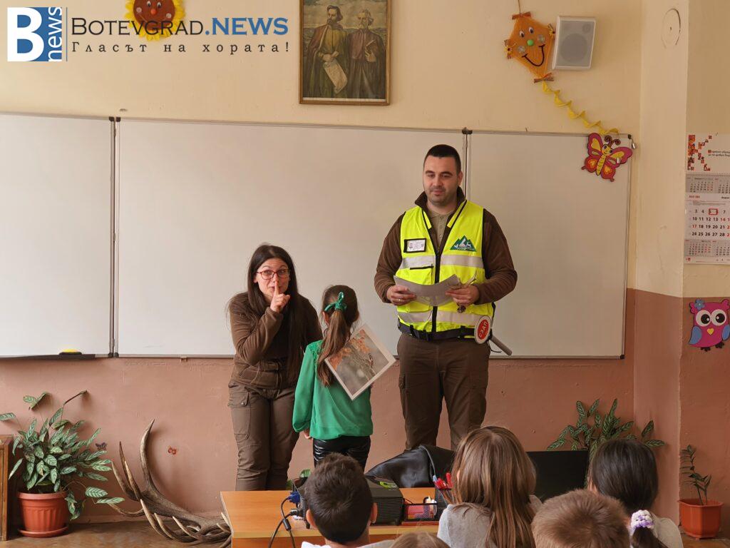 Лесовъдите запознаха децата с дейностите, които извършват, под формата на беседа. Децата разбраха, че дървото е храна, вода, дом за животните, сянка за хората, ресурс и затова не трябва да оставят отпадъците си в гората и трябва да я пазят чиста, за да е здрава. Служителите на ловното стопанство обясниха, че не трябва да се пали огън навсякъде, защото може да предизвика пожар. В детската градина и в училището се изиграха по две игри – „Познавате ли горските животни? А какво знаете за тях?“. Децата разпознаваха на снимки диви животни и казваха какво знаят за него, а лесовъдите допълваха любопитни факти.