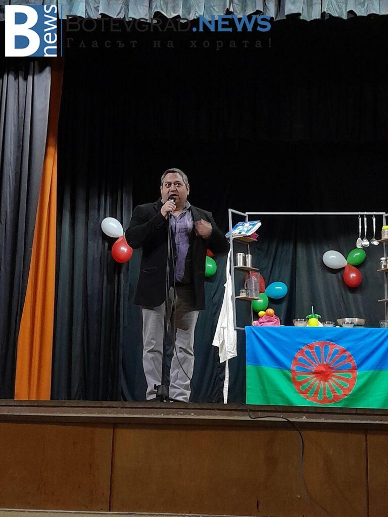 – На днешния ден почитаме паметта на загиналите роми по време на ВСВ на холокоста и от няколко години в Община Ботевград се стремим да отбелязваме този ден с културни мероприятия, а пък в близките 2-3 години се създаде една доброволческа инициатива за почистване на места около ромските квартали, където върху част от площта се обособяват детски площадки, разбира се с помощта и съдействието на Общината. Другото върху, което ще акцентирам е , че не за първи път се отбелязва Международния ден с моноспектакъл. Имахме удоволствието Наталия Цекова да ни представи първият моноспектакъл, написан специално за нея „Цигански колела“ през 2016 г. ,сега е за втори път при нас. Надявам се това да се превърне в традиция и да се знае, че на този ден по този начин ще се отбелязва Международният ден на ромите. Още през 2015 г. заедно с общинското ръководство сме решили този ден да се отбелязва така – с някакво културно мероприятие.