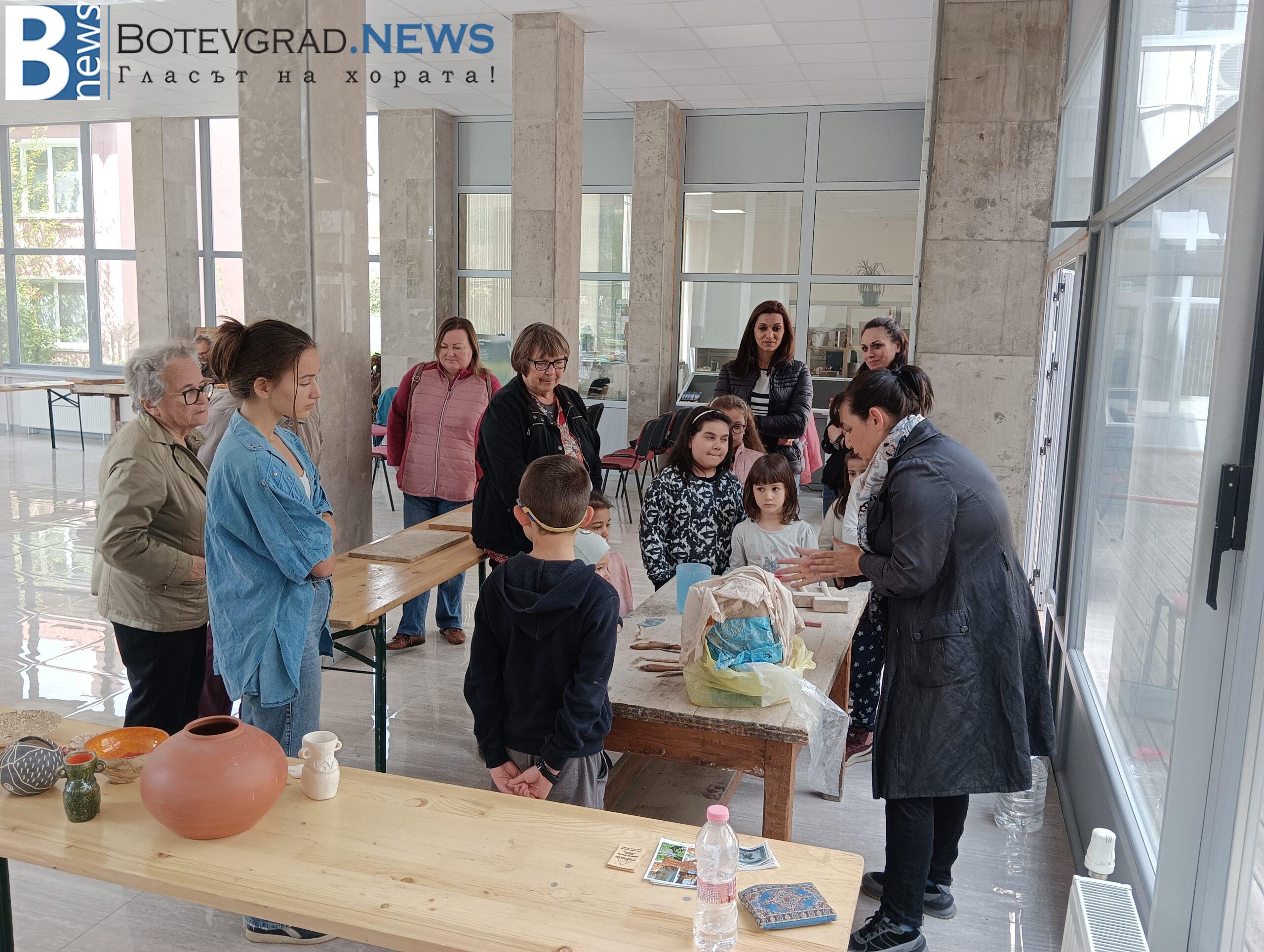 Творците Екатерина Костадинова – майстор на керамика и стъкло и Димитър Христов – дърворезбар показаха различни техники за работа с глина и дърво пред група деца от общината. Те бяха особено заинтригувани от възможностите за работа с глина и демонстрираха творчество за направата на свои форми от глина.