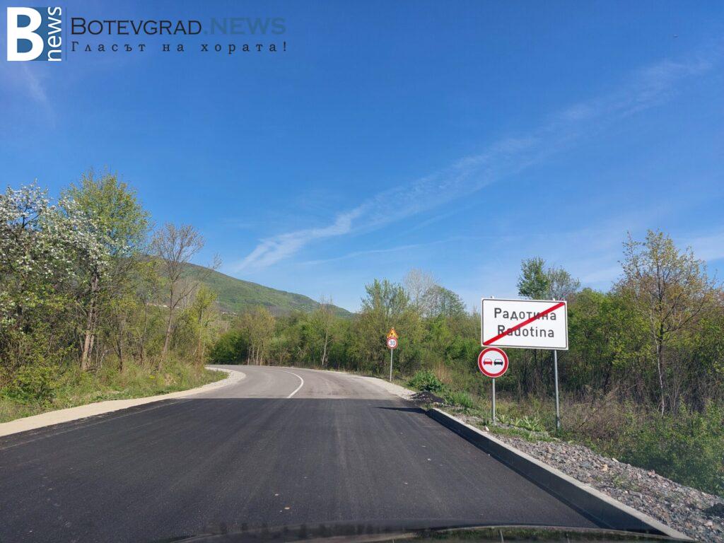 В продължение на повече от 2 години пътят бе в ремонт, а кметът на Община Ботевград, Иван Гавалюгов, няколко пъти се обръща към Агенция „Пътна инфраструктура“, стопанисваща пътя. Днес репортер на botevgrad.News установи, че ремонтът на трасето най-сетне е приключил. Отводнителните шахти в селата Радотина, Рашково и Люти дол вече са изравнени с асфалтовото покритие. Асфалтирането е приключило миналата седмица. Доскоро пътят официално се водеше,че е в строеж, но въпреки това не бе затворен за преминаване на транспортни средства. Същевременно липсваха пътни знаци, а в трите села още няма положена маркировка. Мостовите съоръжения дълго време стояха необезопасени, които в момента са приведени в изрядност.