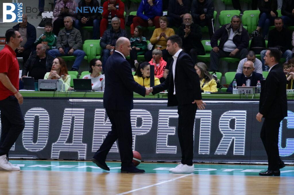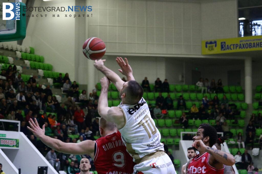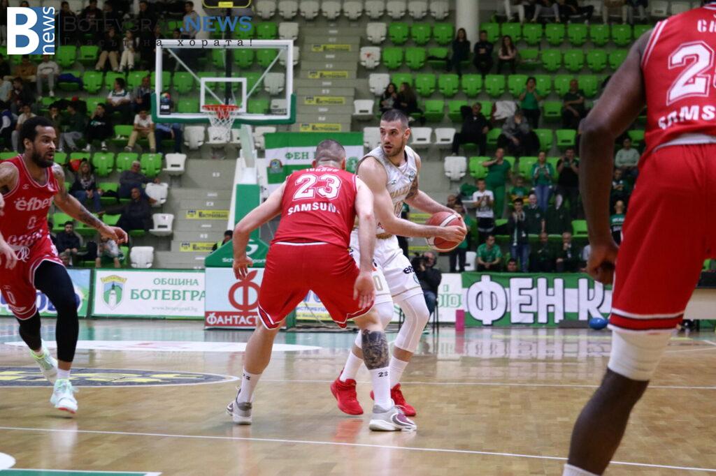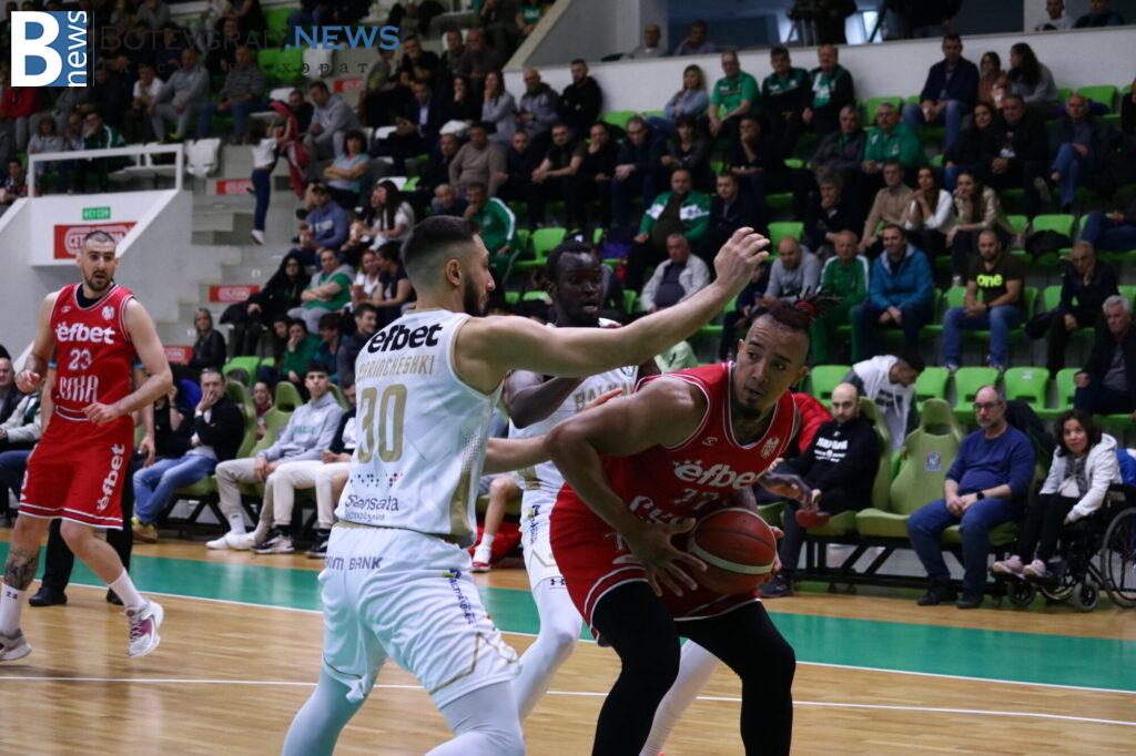 Баскетболистите на Росен Барчовски дръпнаха и с 15 на старта на решителния период, но домакините не се отказаха и още в средата на частта се върнаха в мача, намалявайки за 65:72. На няколко пъти те имаха възможност и още да скъсят дистанцията след грешки на съперника, но не се възползваха и часовникът продължаваше да работи в полза на „червените“. Тройка на Павлин Иванов 52 секунди преди края намали за 79:84 и върна надеждите на домакините, но след това му бе отсъдено неспорсменско нарушение. Чо вкара и двата наказателни удара, след което и Алекс Симеонов не сбърка от линията и на практика това подпечата победата за отбора им.