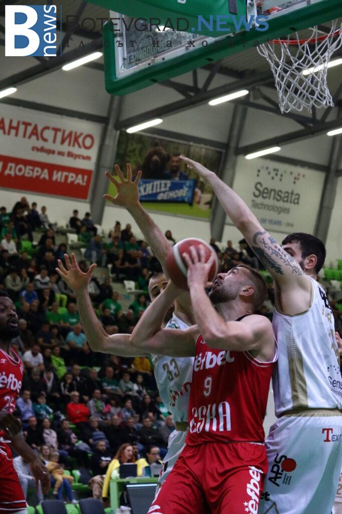 ЦСКА оправи мерника си от тройката в началото на втория период и точни стрелби на Андрей Иванов и Мартин Сотиров отново дадоха предимство от 5-6 точки за отбора им. И този път обаче „зелените“ стигнаха до обрат, но на почивката столичният тим имаше крехка преднина – 42:40.