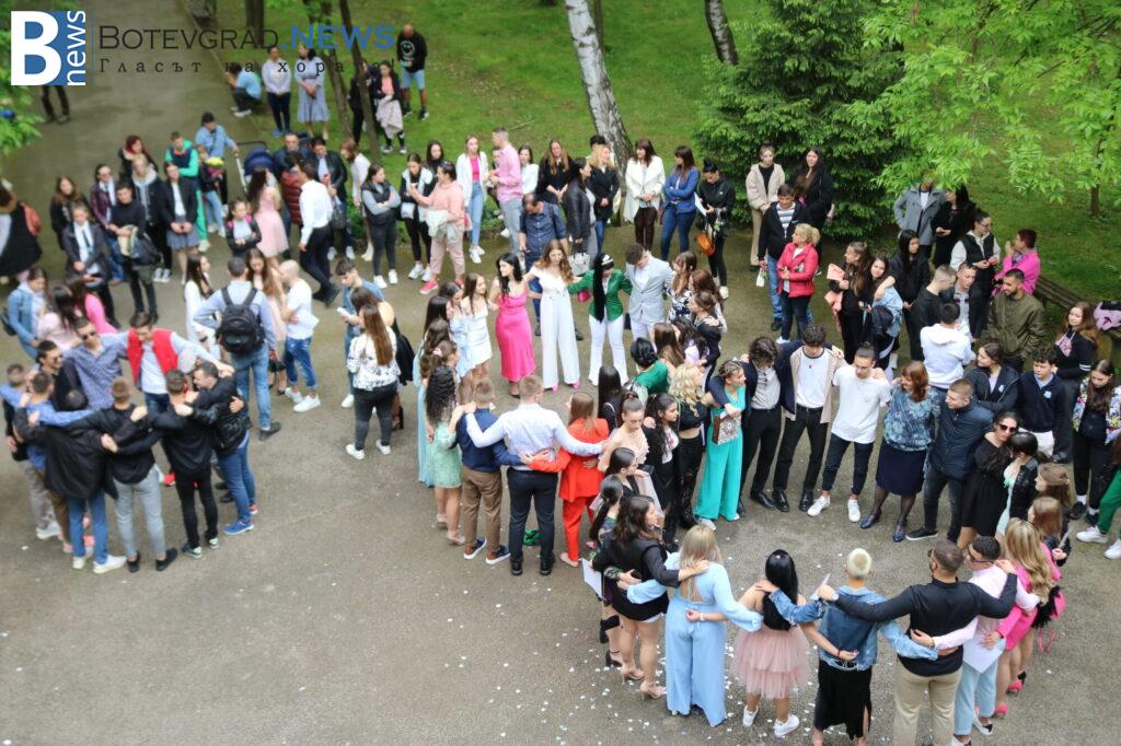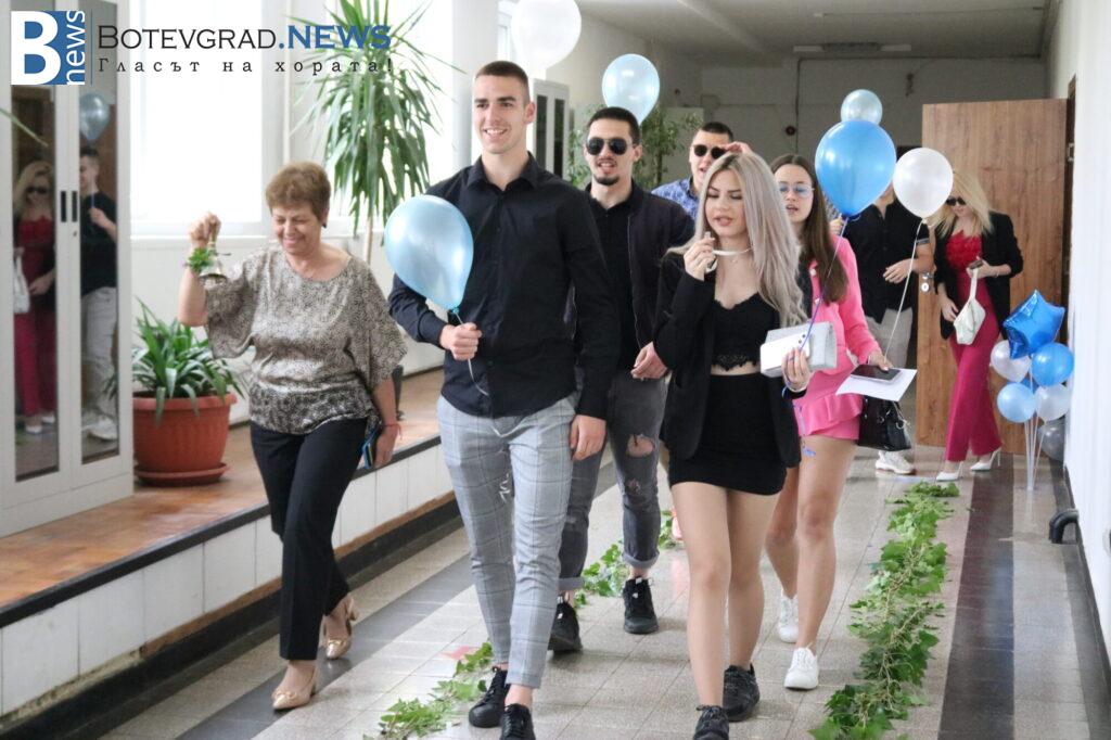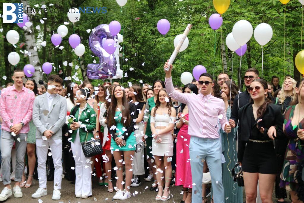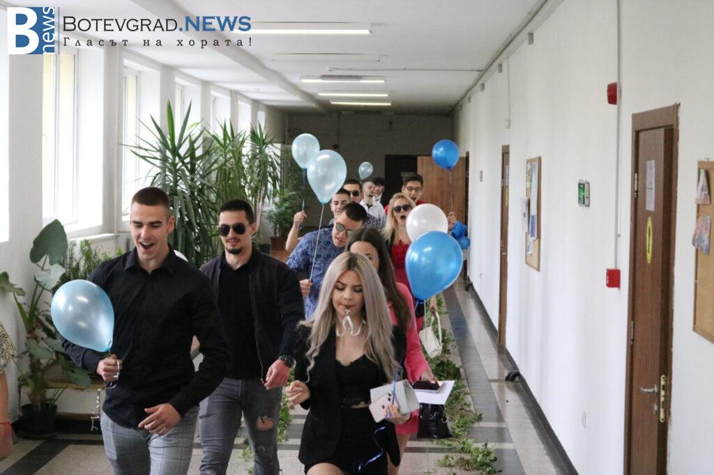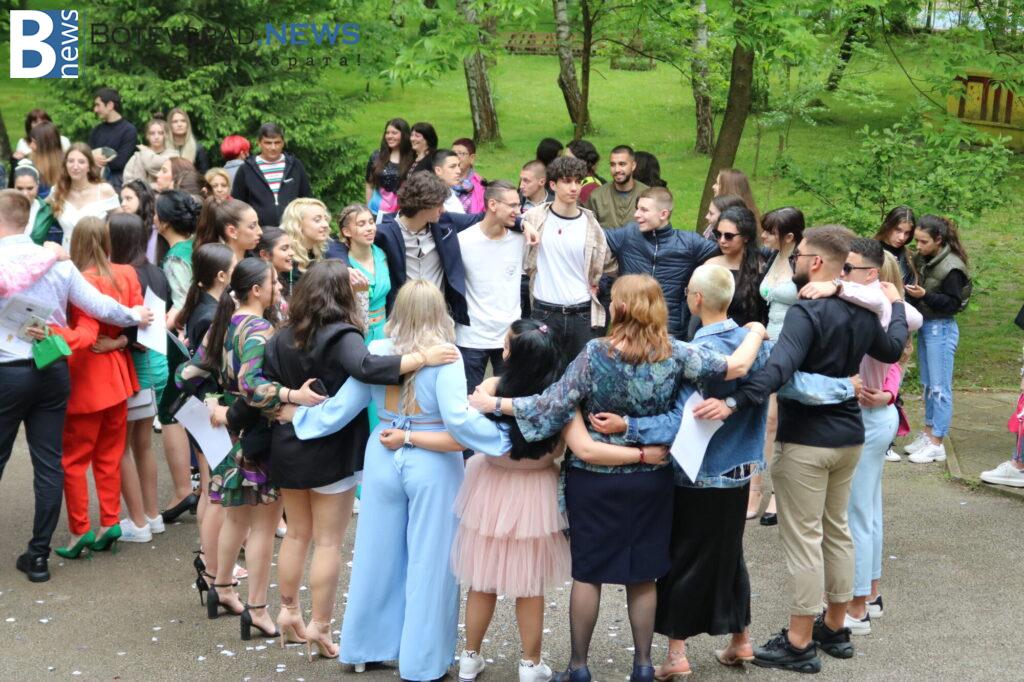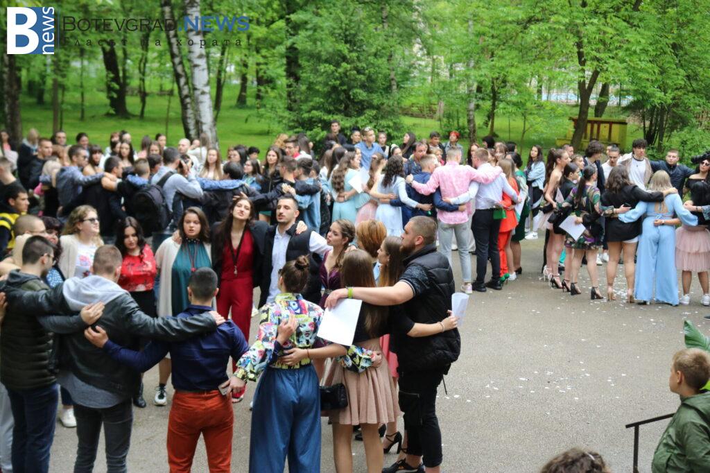 След последния час на класа за 97-мината абитуриенти от Златаровската гимназия, те бяха посрещнати с аплодисменти в двора на училището.