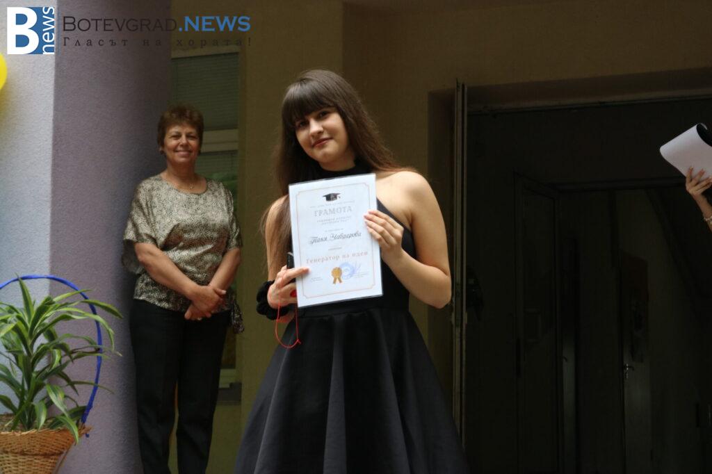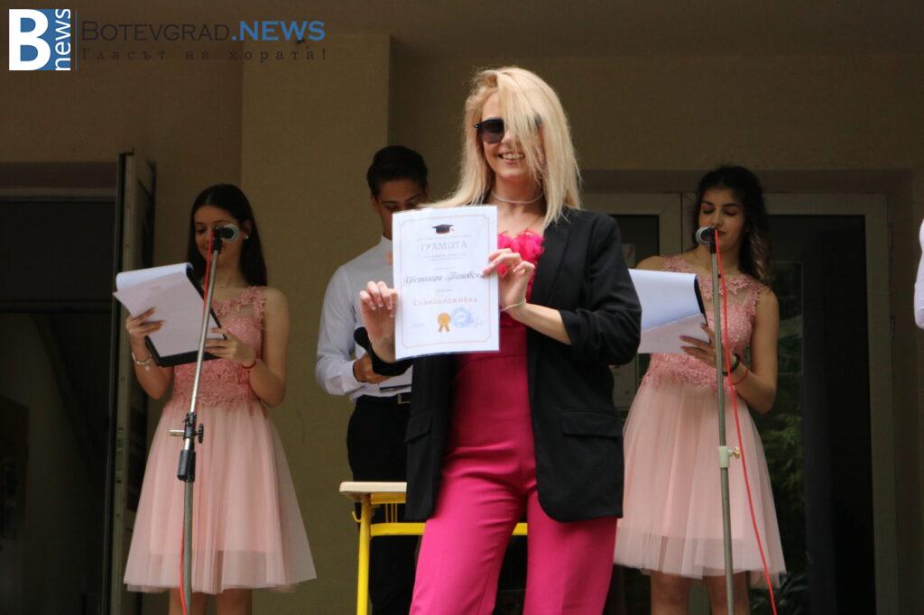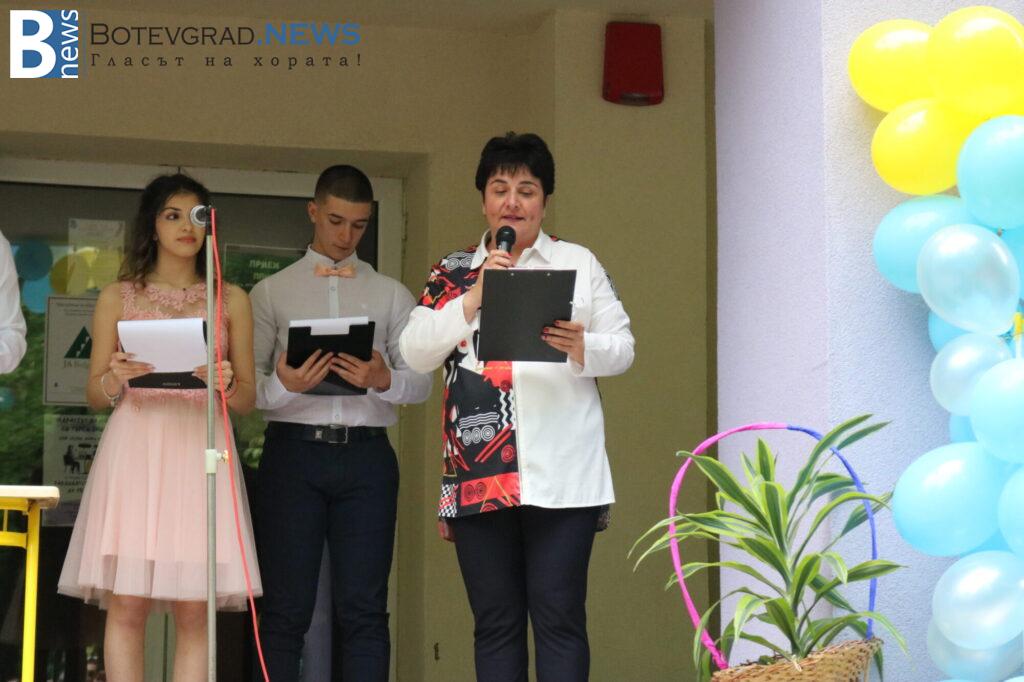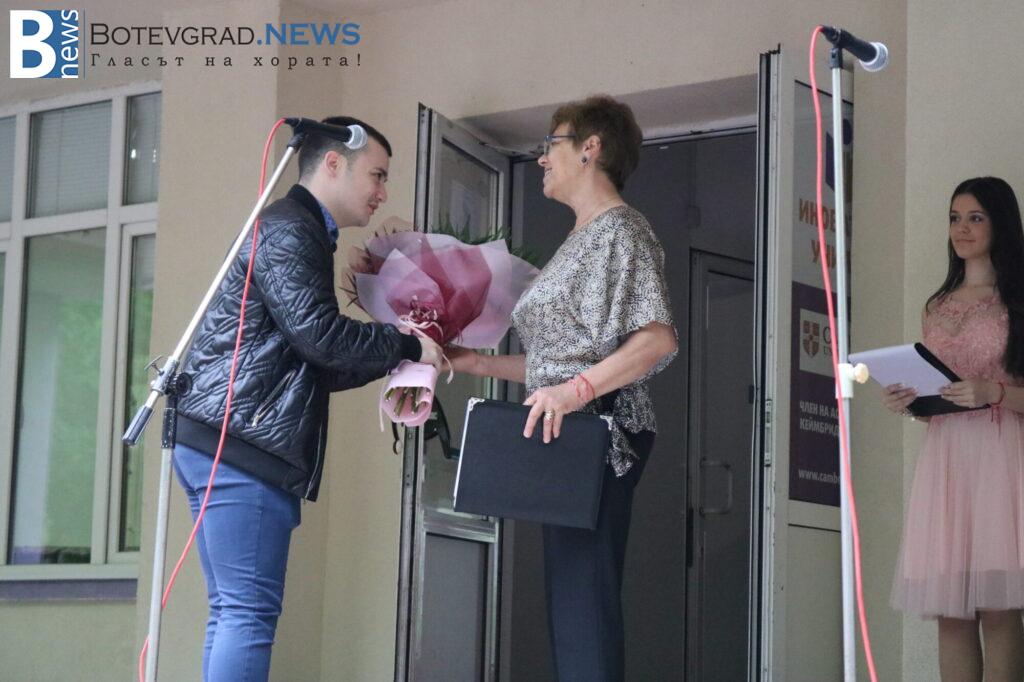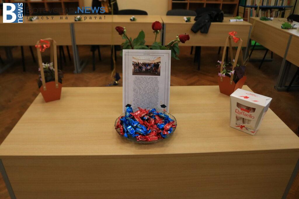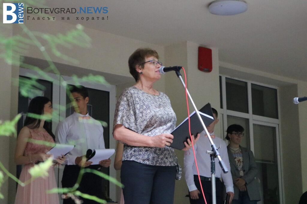 Всеки е скатал в сърцето си някаква частица от училището. Нека да я носи тази частица дълги години и да знае, че ние сме тук, учителите, и винаги можем да Ви помогнем. Бъдете живи и здрави! Пожелавам Ви успешни Държавни зрелостни изпити и на добър път!“