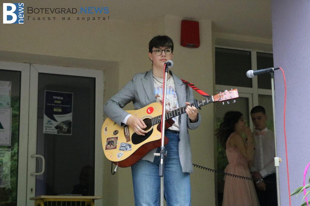 След речта на г-жа Колева, ученичката Калинка Божинова представи музикално изпълнение на песента „Две следи“.