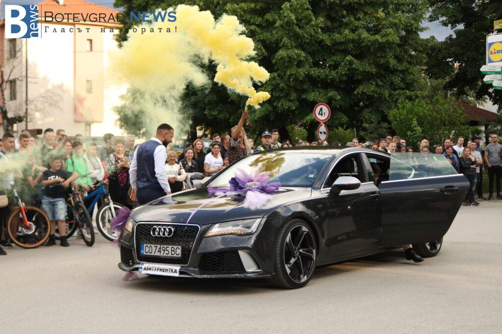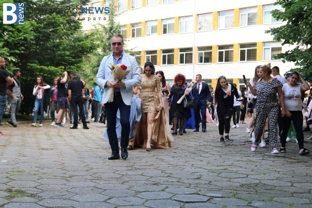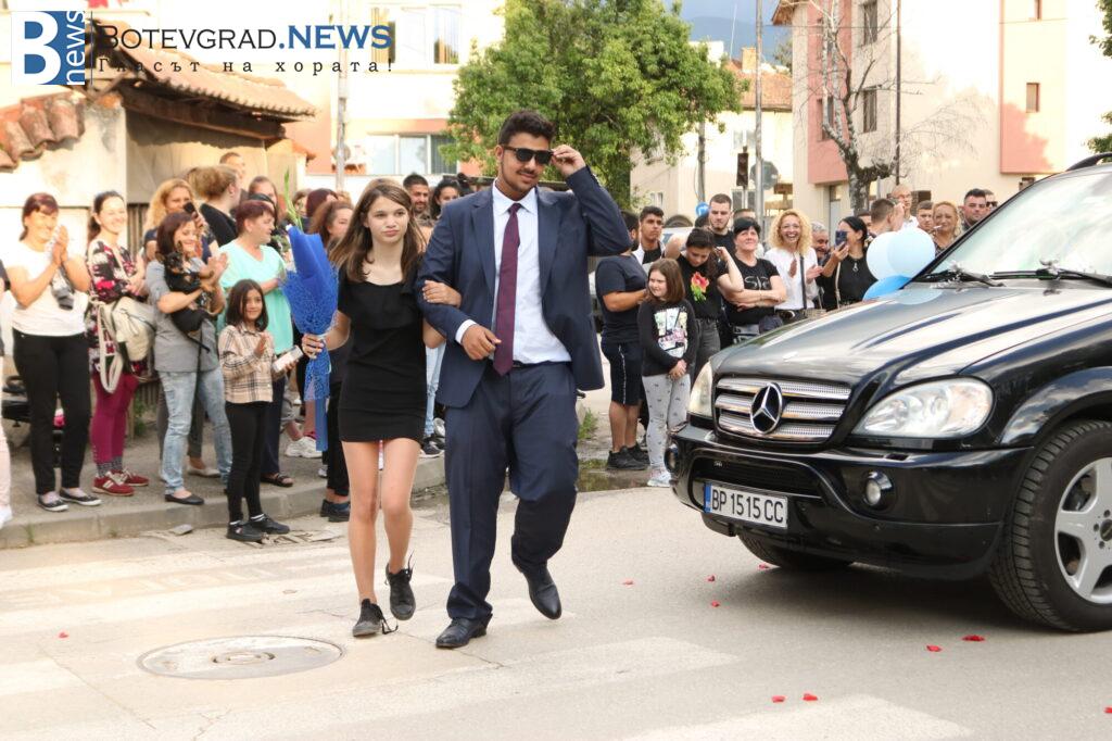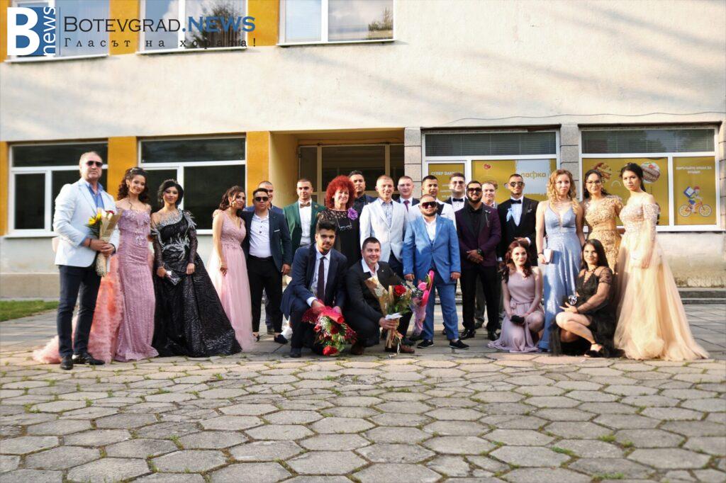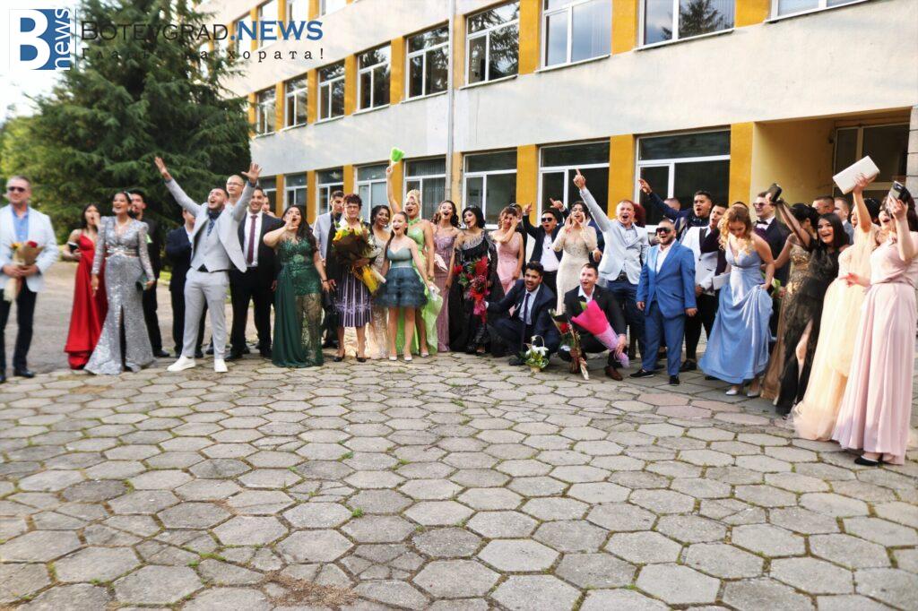 Абитуриентите на професионалната гимназия в Ботевград се събраха в двора на училището, за да отбележат края на професионалното си образование по дългоочаквания начин – дружно и с веселие. Аплодирани от свои близки и приятели те дефилираха в красиви рокли и костюми. Луксозните автомобили бяха само допълнителен аксесоар към изящната им визия.