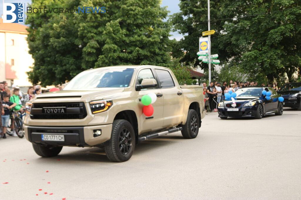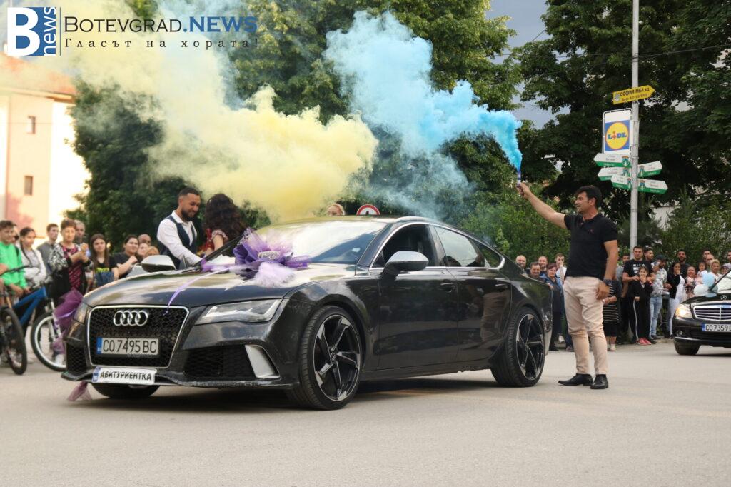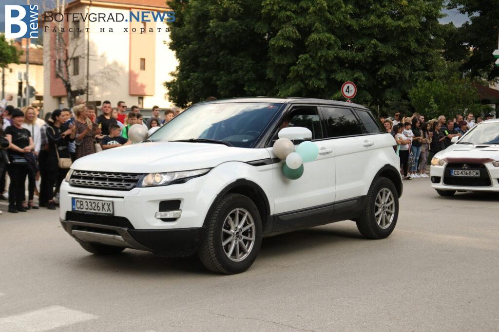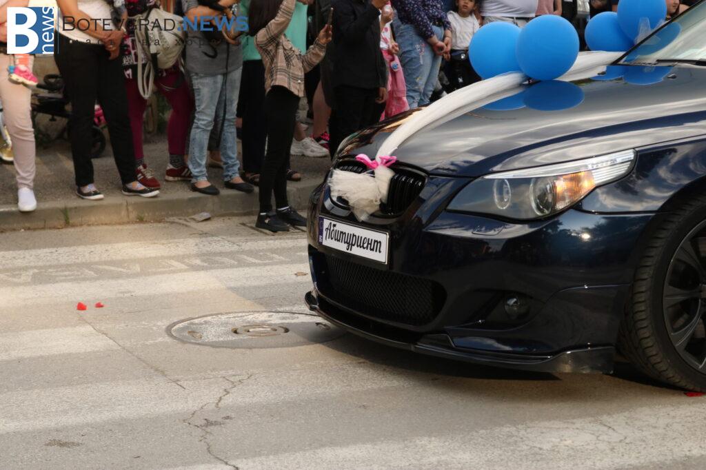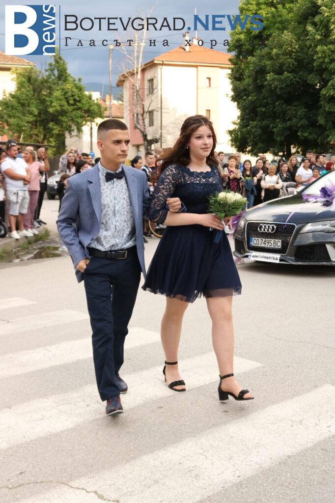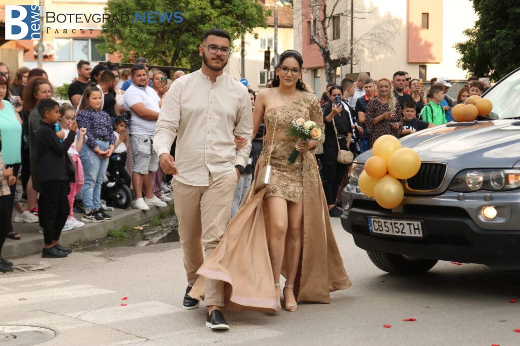 Абитуриентите на професионалната гимназия в Ботевград се събраха в двора на училището, за да отбележат края на професионалното си образование по дългоочаквания начин – дружно и с веселие. Аплодирани от свои близки и приятели те дефилираха в красиви рокли и костюми. Луксозните автомобили бяха само допълнителен аксесоар към изящната им визия.