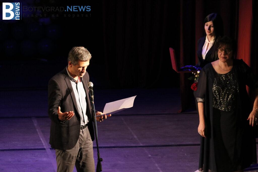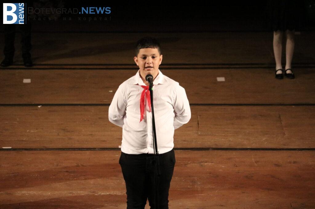 „Вярвам, че и в днешни дни учат, будни, умни млади последователи, които в бъдеще, и то в съвсем близко, ще дадат своя голям принос за развитието на града, общината и страната, но това се случва благодарение на усилията на стотици учители, които са дали една немалка част от своя живот – от младите си години, от по-зрелите си години, от усилията сила, от нервите си дори, от професионалните си умения наистина да обучат тези ботевградчани, така че в бъдеще те да се превърнат наистина в хора, които да се спомогнат за развитието на града ни.„, каза в своята реч г-н Гавалюгов и присъди Почетен медал на Община Ботевград за дългогодишна педагогическа дейност в ОУ „Васил Левски“ и висок професионален опит на Тошка Александрова Велева и Катя Ценова Василева и Почетен медал на Община Ботевград за принос и заслуги в образованието в град Ботевград на Петко Георгиев Маринов.