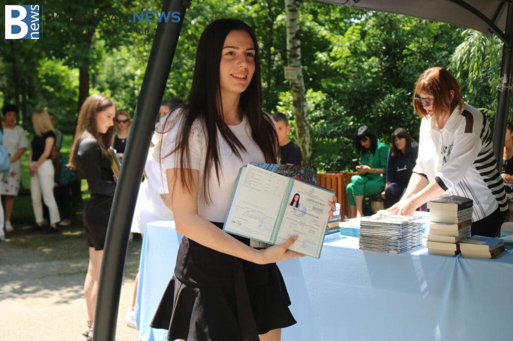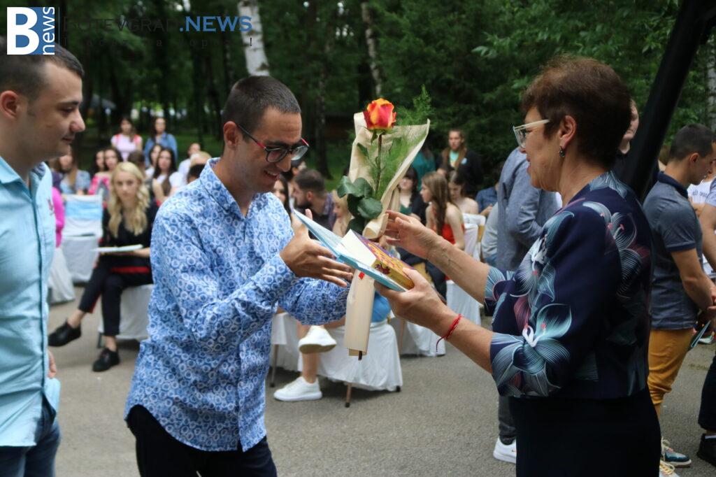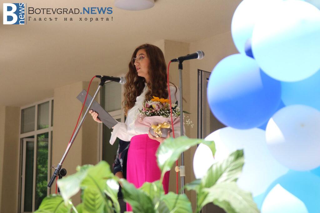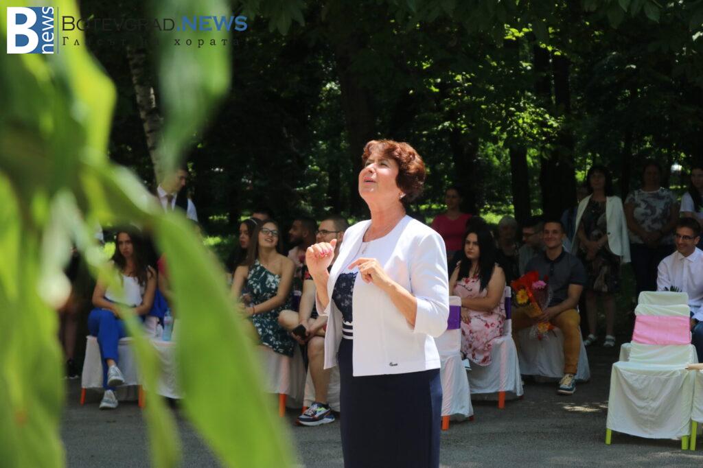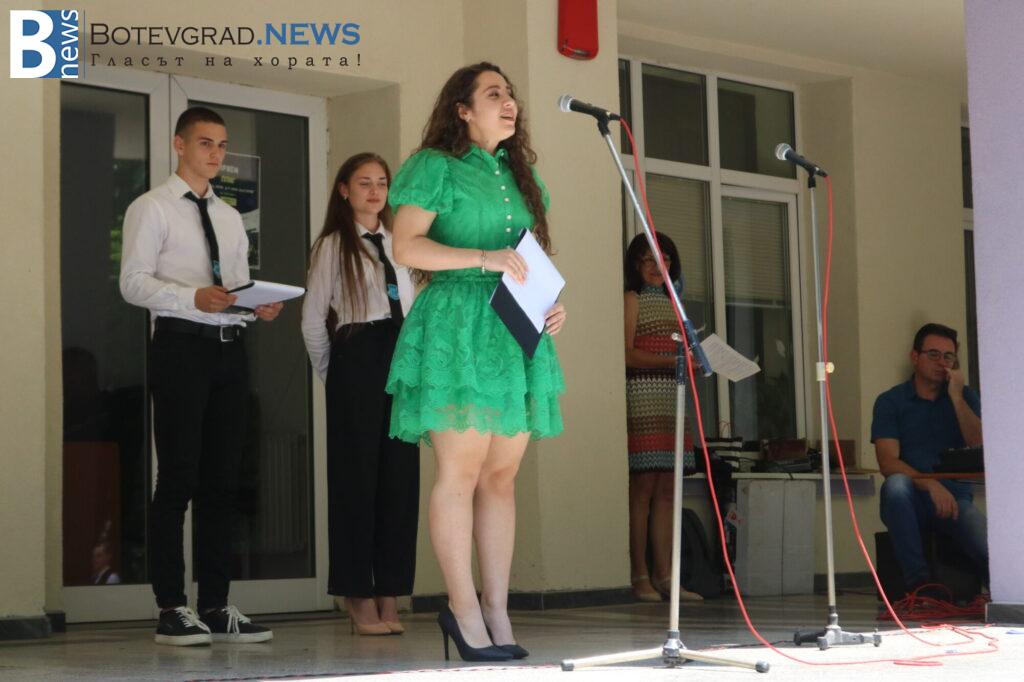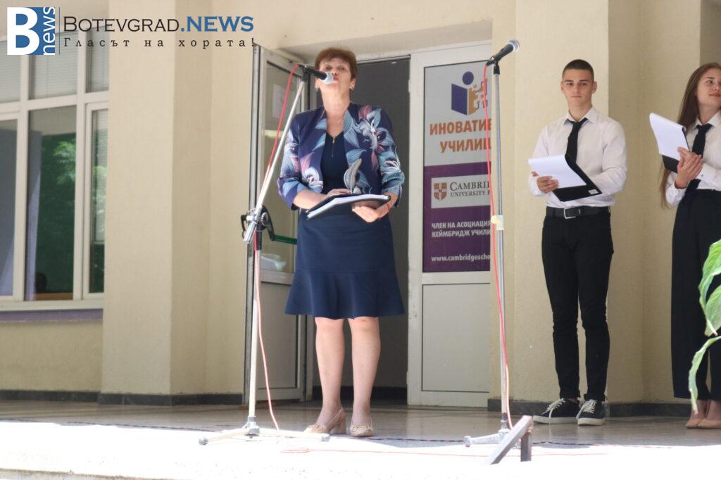 „С гордост мога да кажа, че в Профилирана природно-математическа гимназия се обучават, възпитават и изграждат достойни и стойностни личности с разнообразни интересни и възможности, което е гаранция за успеха в тяхното бъдещо развитие. На добър час, уважаеми, вече дипломирани, ученици! Дерзайте по пътя на успеха и знайте, че славата е само миг по пътя на идеала! Нека празници като днешният изпълват дните Ви, защото празникът на духа винаги е по-важен от всеки друг! Пожелавам Ви на добър час!“, каза в приветствие към зрелостниците директорът Даниела Колева.