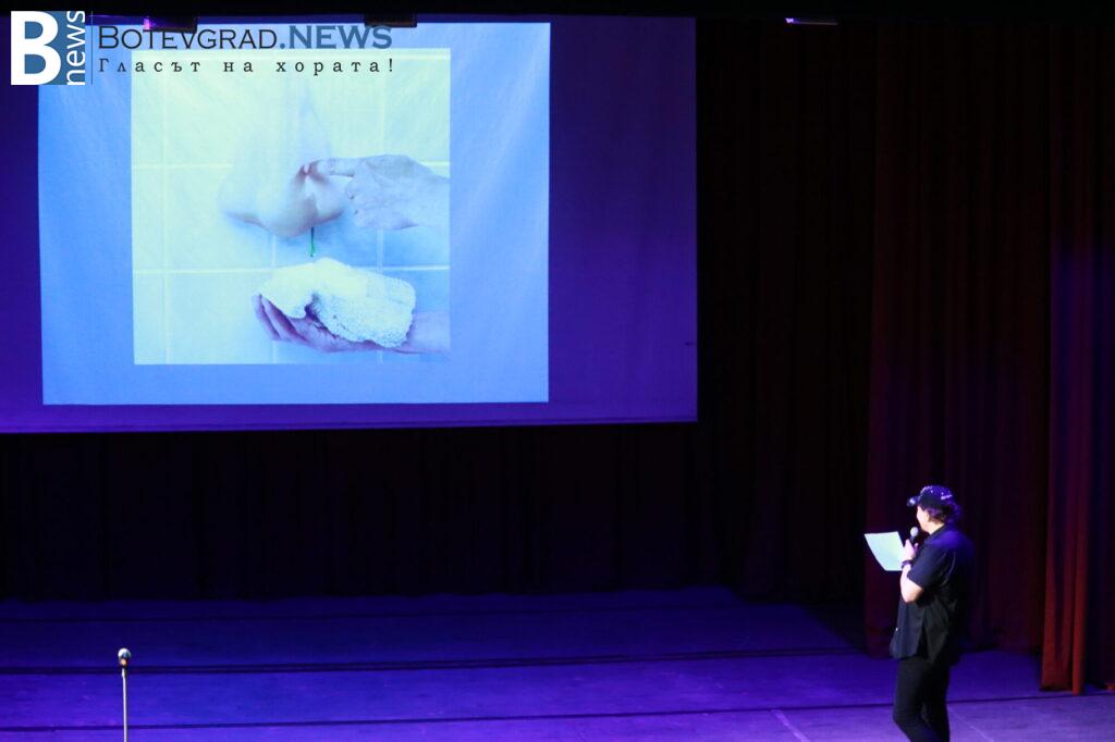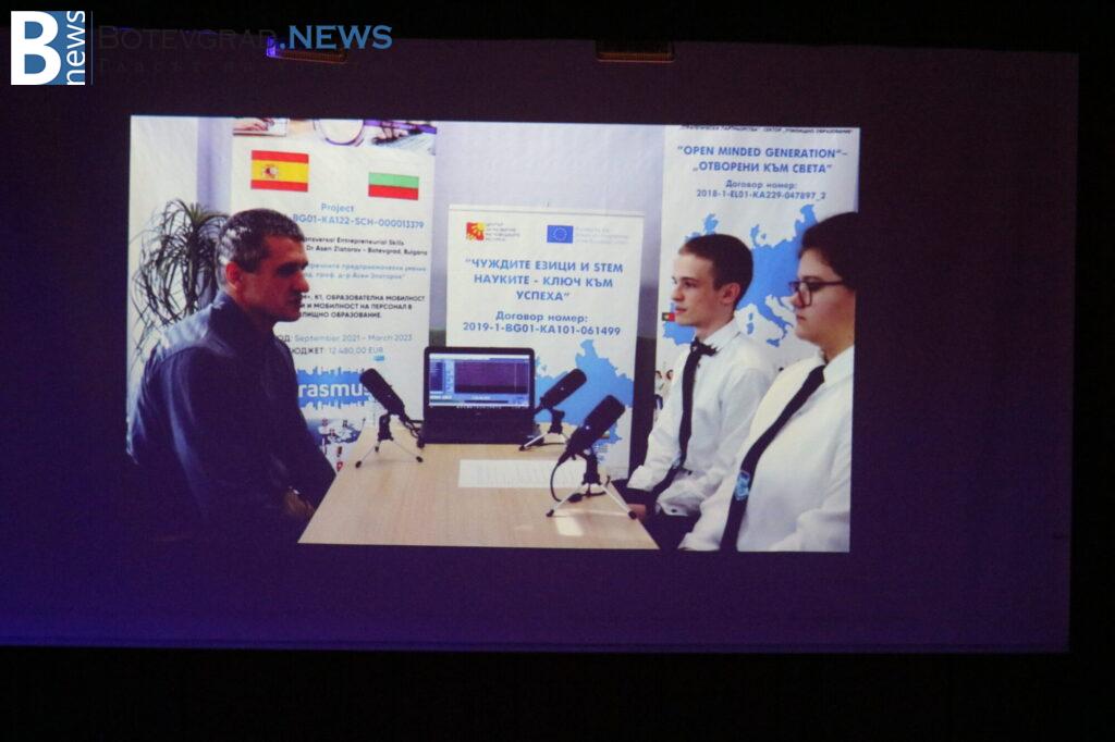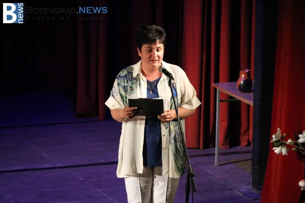 Г-жа Даниела Колева – директор на ППМГ „Акад. проф. д-р Асен Златаров“ – гр. Ботевград получи думата за поздрав към Иво Иванов. „Г-н Иванов, днес Вие направихте нещо изключително за учениците от Профилирана природо-математическа гимназия, като показахте силата на знанието и силата на духа,и го направихте от сърце, за което Ви благодаря!„., каза Даниела Колева към писателя Иво Иванов.