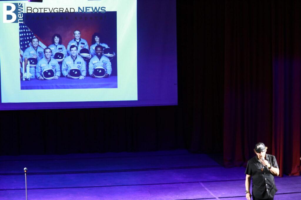 Писателят разказа няколко истории по време на своето гостуване. Една от тях бе негов разказ „Понякога трябва да се отдалечиш“. В него става въпрос за това как той е пропътувал 1258 километра в САЩ заради една кожена топка, която е подарена от училищен отбор на един от астронавтите на НАСА, за да я вземе със себе си в космоса. Уви, неговият „Чалънджър“ лети към небето само 73 секунди, а след това избухва в пламъци. Дни след това във водите на атлантическият океан намират топката непокътната. 31 години по-късно тя се намира в космоса, но с друг екипаж. Пропътувала милиони километри, тя се е върнала на Земята и в момента се намира във витрината на училището на същия този отбор, от който започва тази история. „Понякога, за да видиш нещо ясно, трябва да направиш няколко крачки назад – да се отдалечиш.„, казва в своя разказ Иво Иванов.