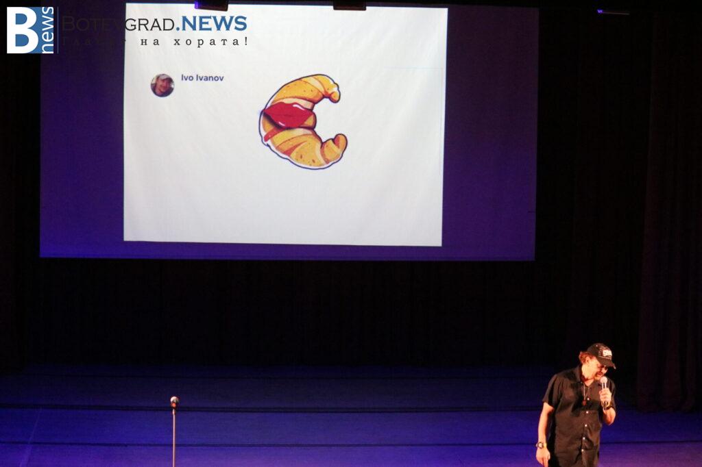 В същинската част Иво Иванов спомена за своите герои в баскетбола в Ботевград, когато той е бил тинейджър, коментира темата за инвестирането на много пари в българския футбол, с хумористична нотка направи коментар и към някои абсурдни продукти, продавани на американския пазар.
