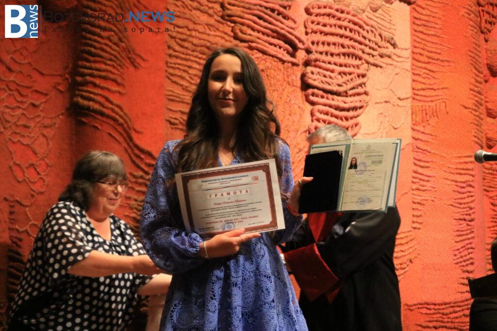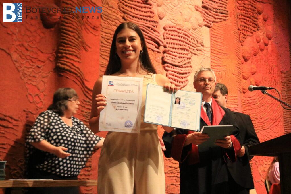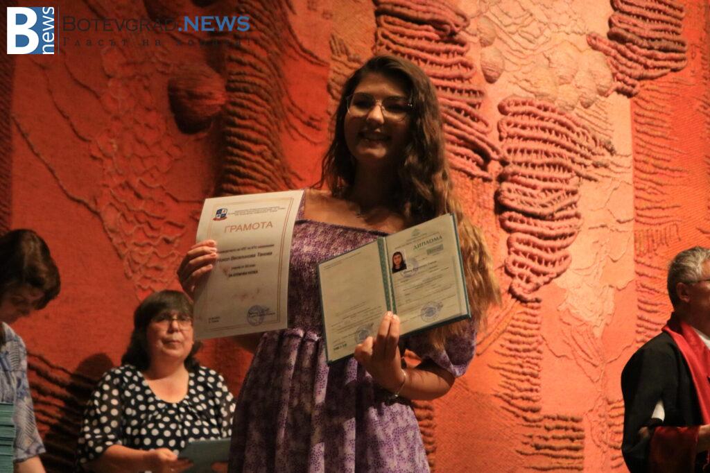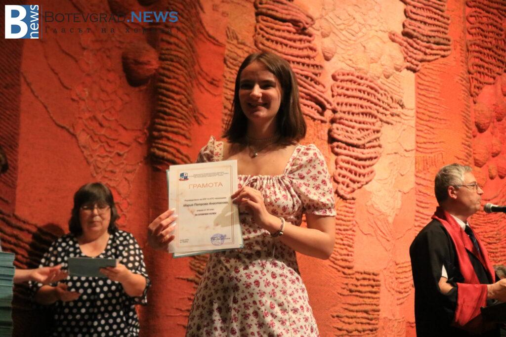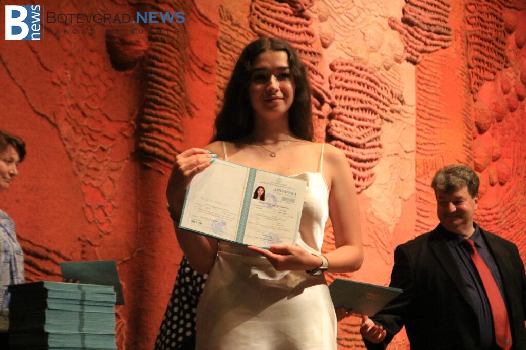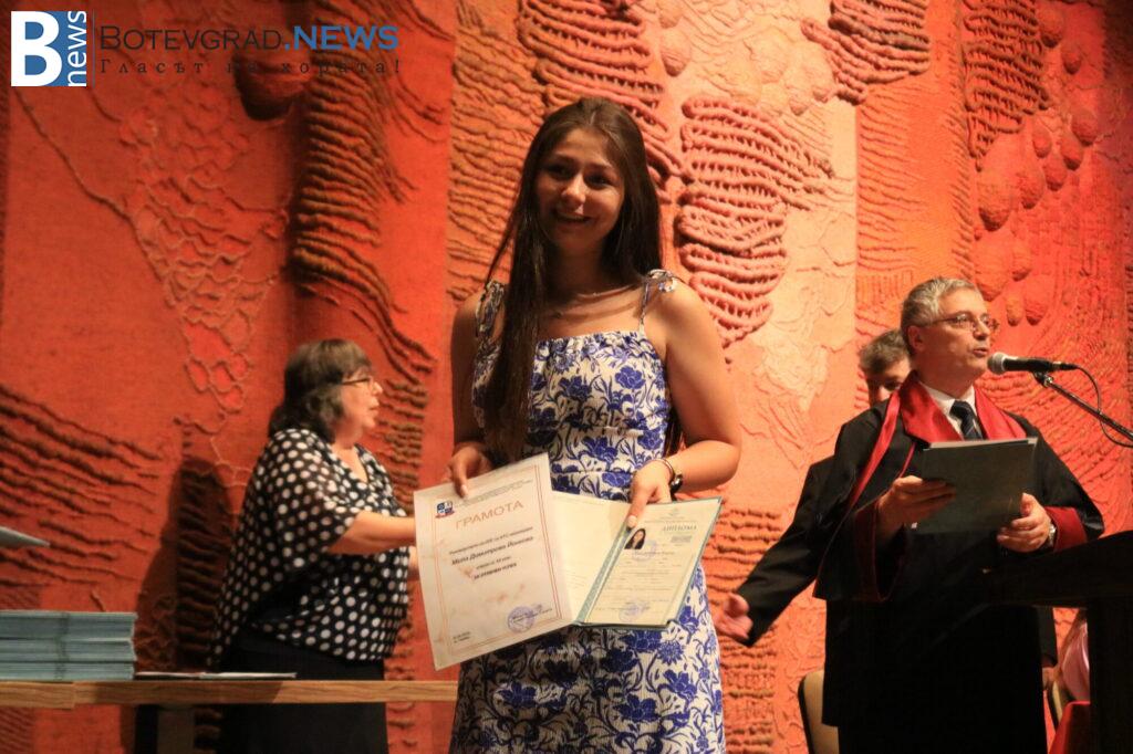 140 ученици получават дипломи за средно образование. От тях 50 са с отличен успех, а от тях пък 13 са с Отличен 6,00.