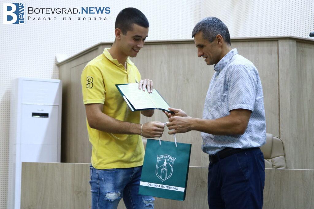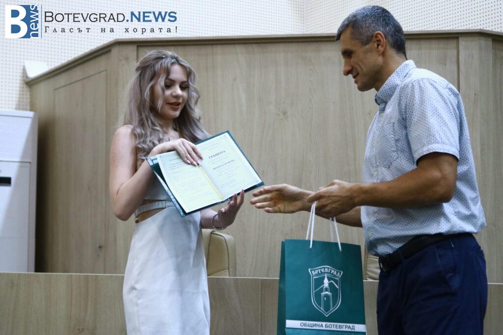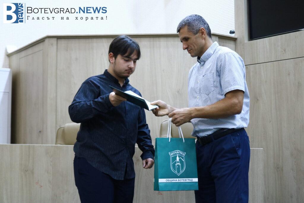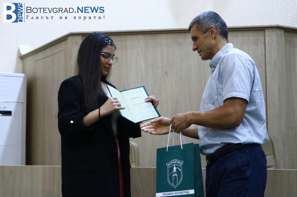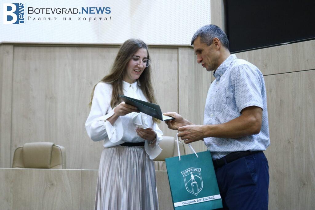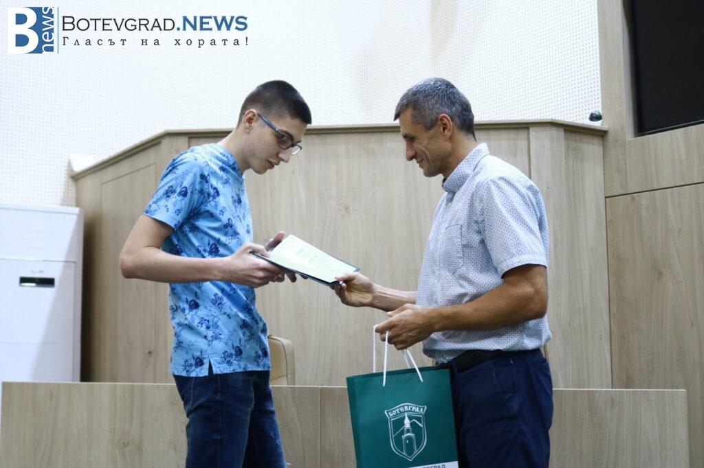 Кметът на Общината Иван Гавалюгов също поздрави отличниците: „На всеки един от Вас желая успешна реализация. Надявам се, обаче, всяка година го казвам, че по един или друг начин ще успеете да върнете вложените време, усилия, инвестицията, която нашето общество, вашите родители и учители са направили във вас под някаква форма в нашия роден Ботевград. Тук сте се оформили, изградили като хора, като личности, получили сте необходимата основа за вашето бъдещо развитие. Естествено, светът е широк, всеки ще поеме по своя път – дали в България, дали в чужбина, но никога не забравяйте откъде сте тръгнали и направете необходимото да върнете този жест, който е направен за вас през изминалите години. На добър час на всеки един от Вас!„