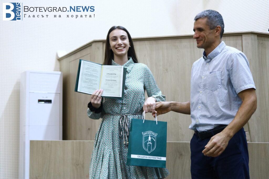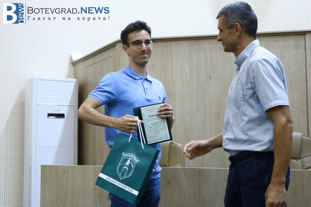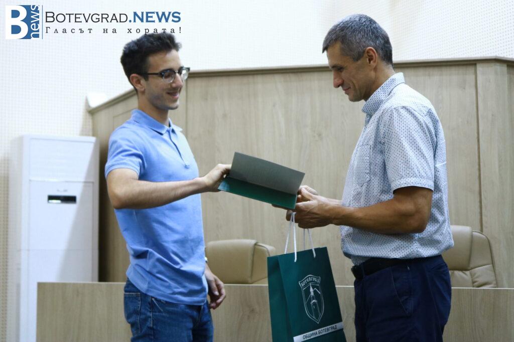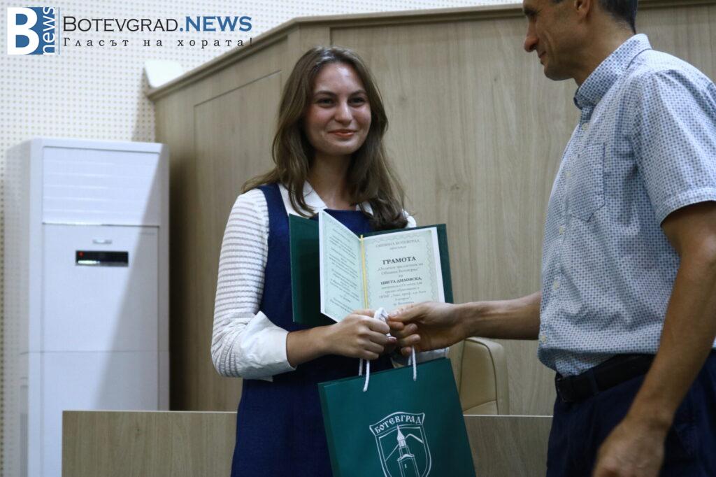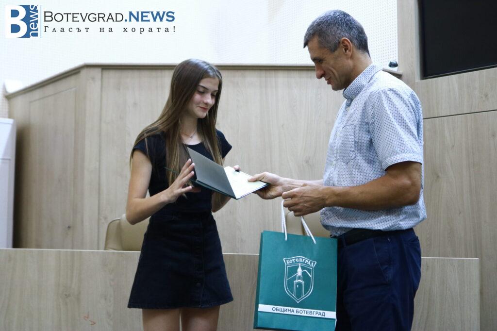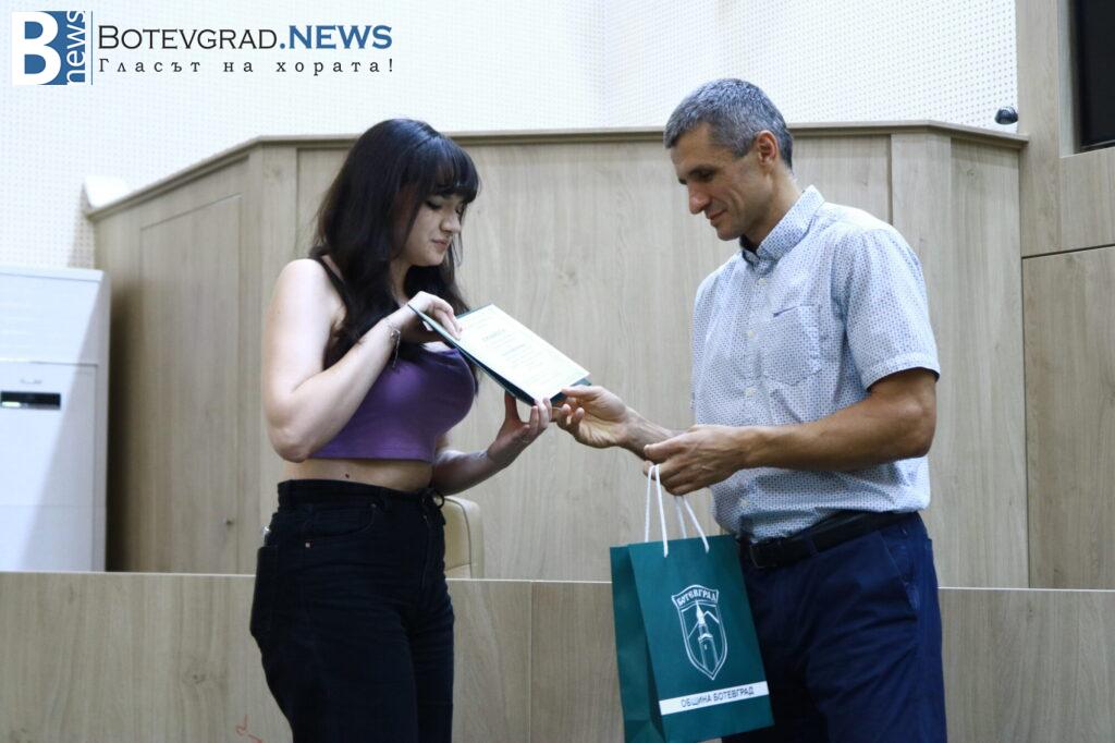 Кметът на Общината Иван Гавалюгов също поздрави отличниците: „На всеки един от Вас желая успешна реализация. Надявам се, обаче, всяка година го казвам, че по един или друг начин ще успеете да върнете вложените време, усилия, инвестицията, която нашето общество, вашите родители и учители са направили във вас под някаква форма в нашия роден Ботевград. Тук сте се оформили, изградили като хора, като личности, получили сте необходимата основа за вашето бъдещо развитие. Естествено, светът е широк, всеки ще поеме по своя път – дали в България, дали в чужбина, но никога не забравяйте откъде сте тръгнали и направете необходимото да върнете този жест, който е направен за вас през изминалите години. На добър час на всеки един от Вас!„