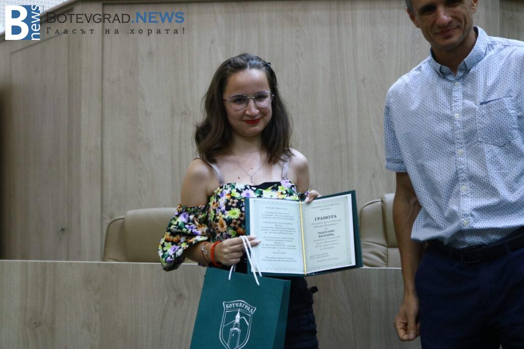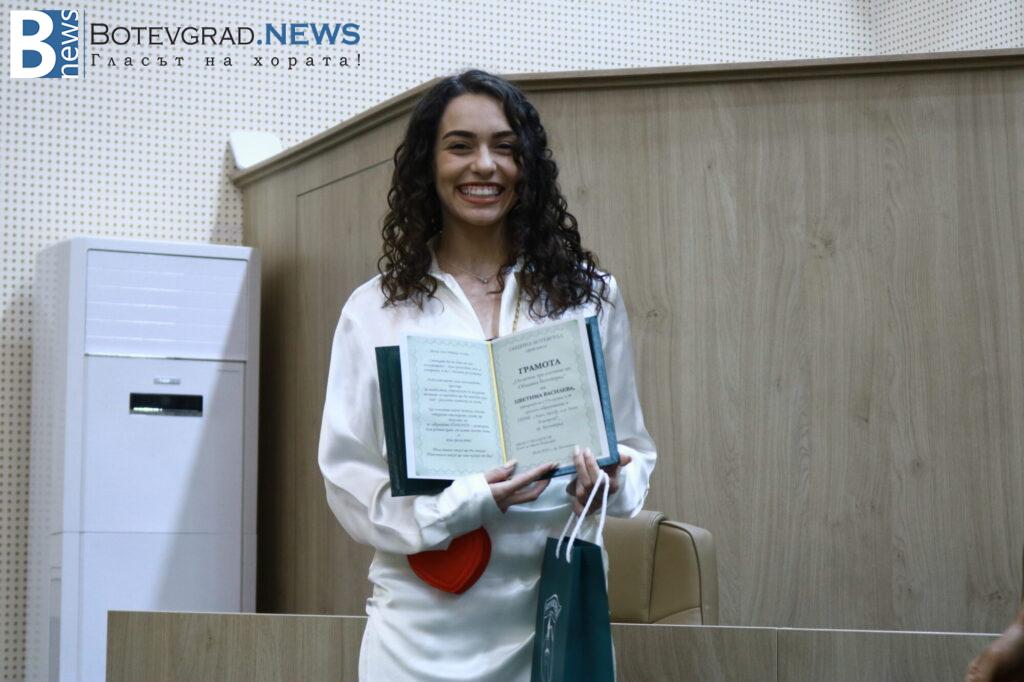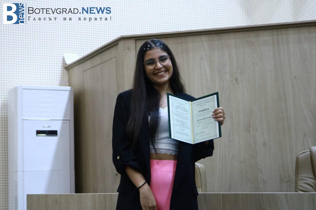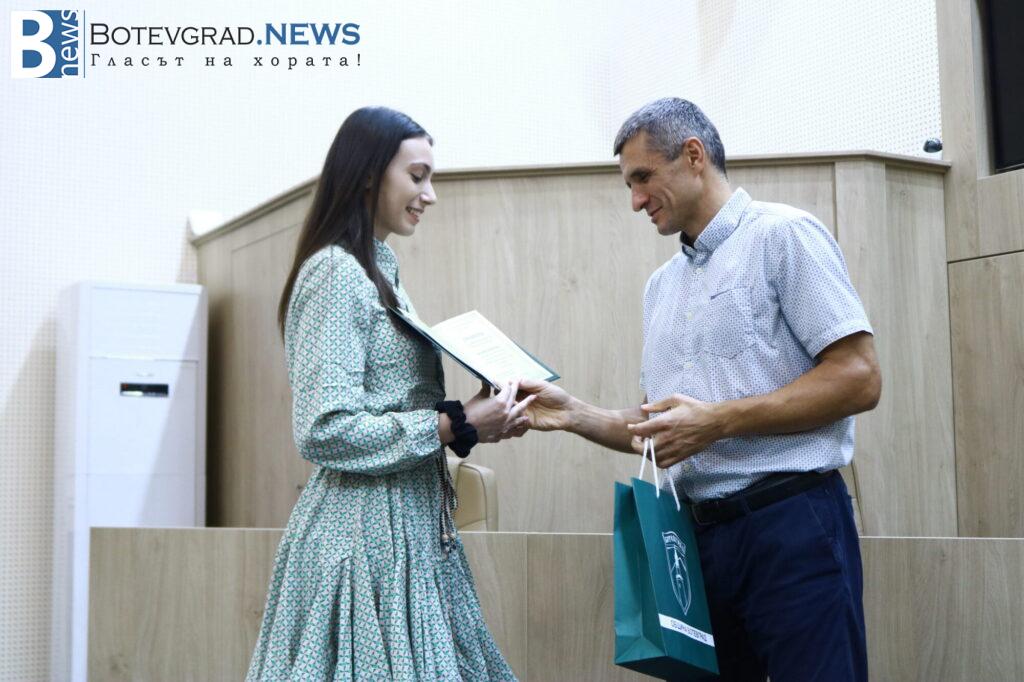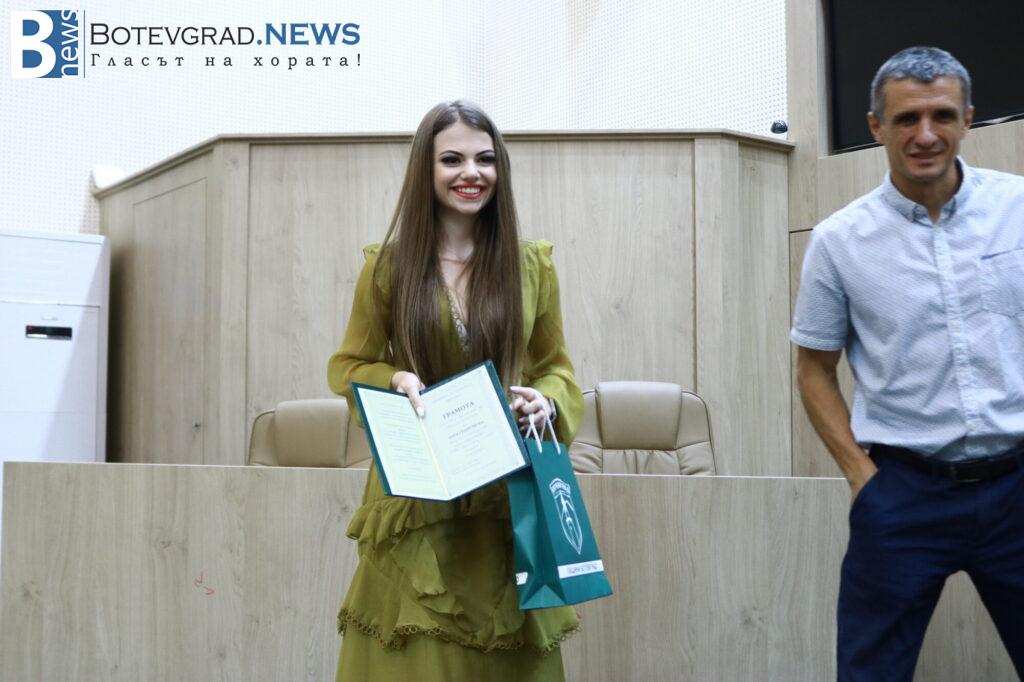 „Вярвам, че всички заедно с Вас се вълнуваме и гордеем едновременно затова, че пред нас стоят 47 девойки и младежи, девойки младежи родени, учили, израснали в община Ботевград и завършили своето средно образование именно тук. 47 млади хора, които искам да поздравя за избора да извървят този път към зрелостта с изключително високи резултати, защото това е избор, който всички Вие сте направили със себе си, но той е подкрепен именно от вашите родители, учители и ръководители. Благодаря Ви затова, че днес сме заедно тук и за осма поредна година ръководството на Община Ботевград има възможността да изрази тази морална подкрепа към вас, като Ви връчи отличието „Отличен зрелостник на община Ботевград“.„, каза г-жа Граматикова.