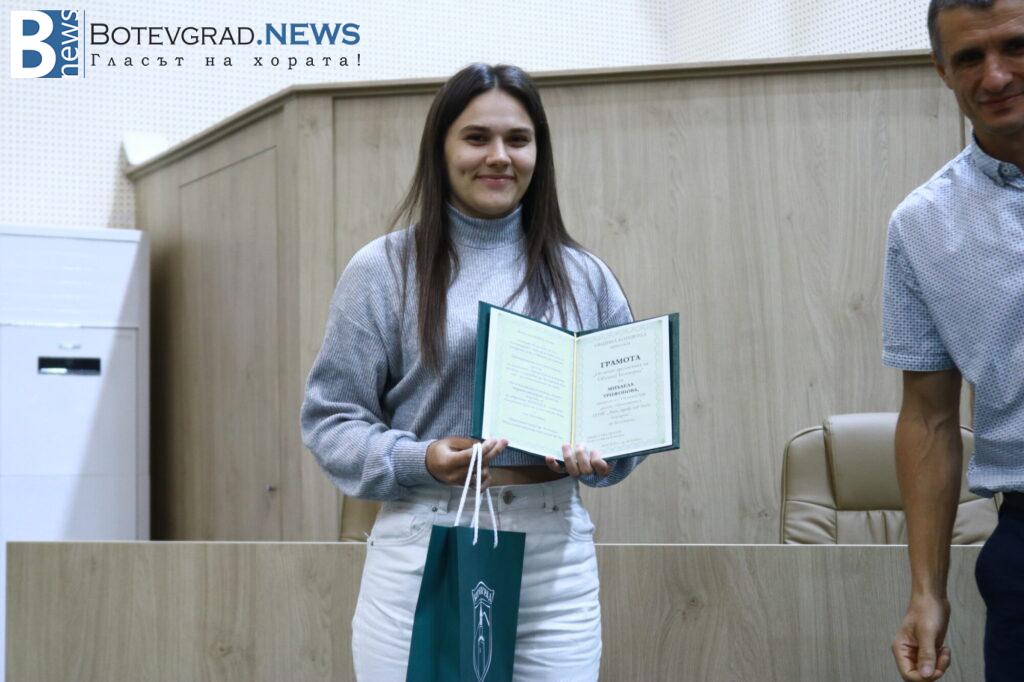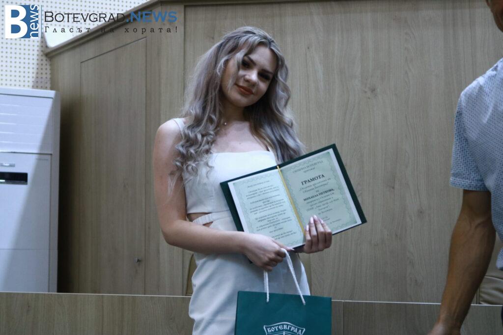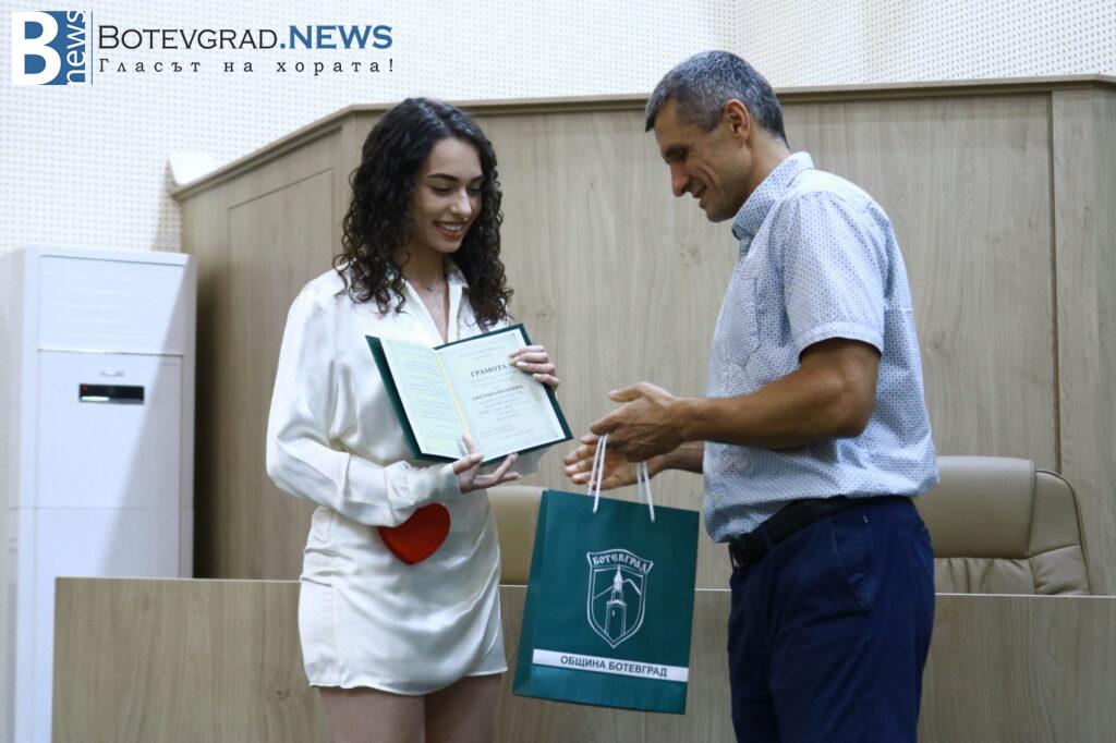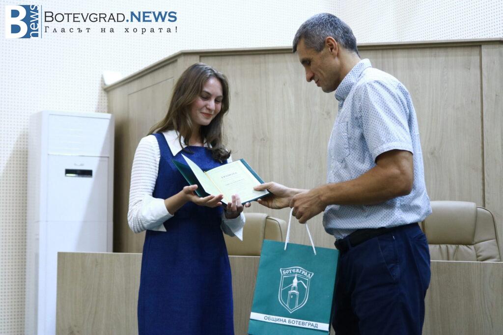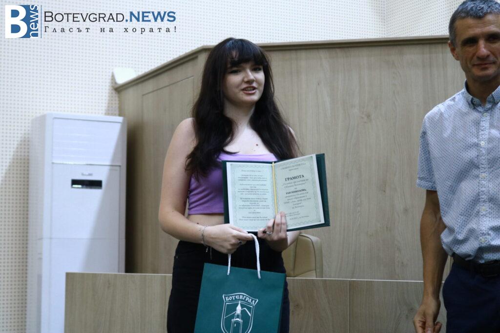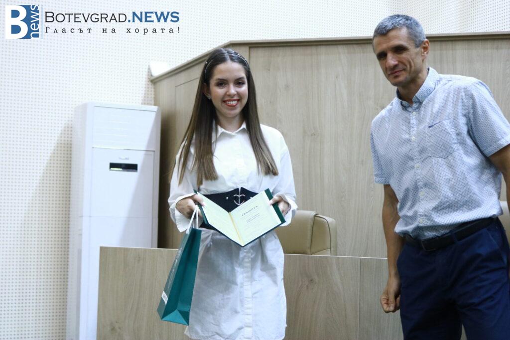 „Вярвам, че всички заедно с Вас се вълнуваме и гордеем едновременно затова, че пред нас стоят 47 девойки и младежи, девойки младежи родени, учили, израснали в община Ботевград и завършили своето средно образование именно тук. 47 млади хора, които искам да поздравя за избора да извървят този път към зрелостта с изключително високи резултати, защото това е избор, който всички Вие сте направили със себе си, но той е подкрепен именно от вашите родители, учители и ръководители. Благодаря Ви затова, че днес сме заедно тук и за осма поредна година ръководството на Община Ботевград има възможността да изрази тази морална подкрепа към вас, като Ви връчи отличието „Отличен зрелостник на община Ботевград“.„, каза г-жа Граматикова.