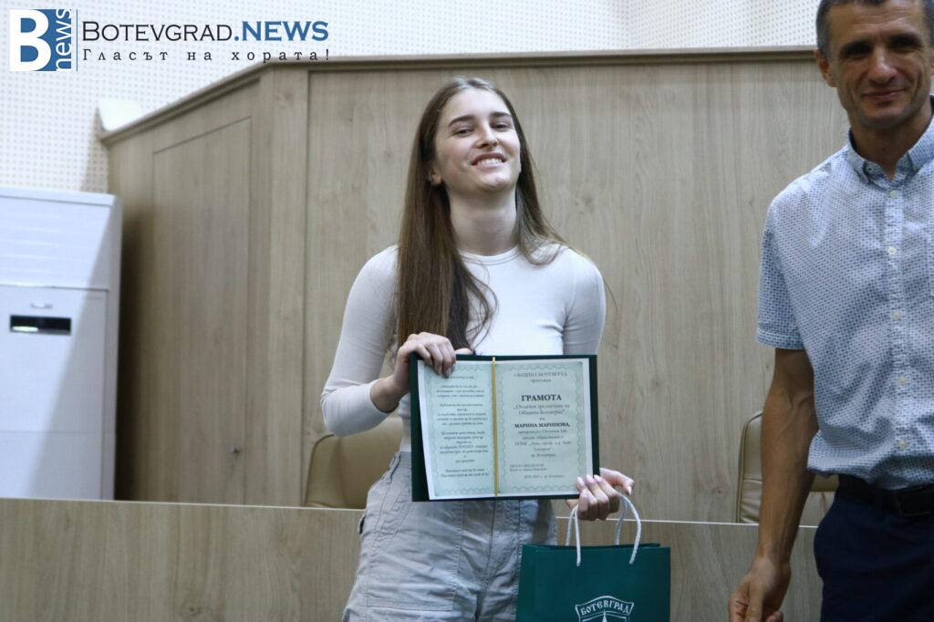 Днес в зала „Ботевград „бяха връчени грамотите „Отличен зрелостник на община Ботевград“ на абитуриентите от общината, които завършват средното си образование с отличен успех. Тази година 47 зрелостници получават такава награда – 42-ма възпитаници на ППМГ „Акад. проф. д-р Асен Златаров“ и 5-ма от ПГТМ „Христо Ботев“ – гр. Ботевград.