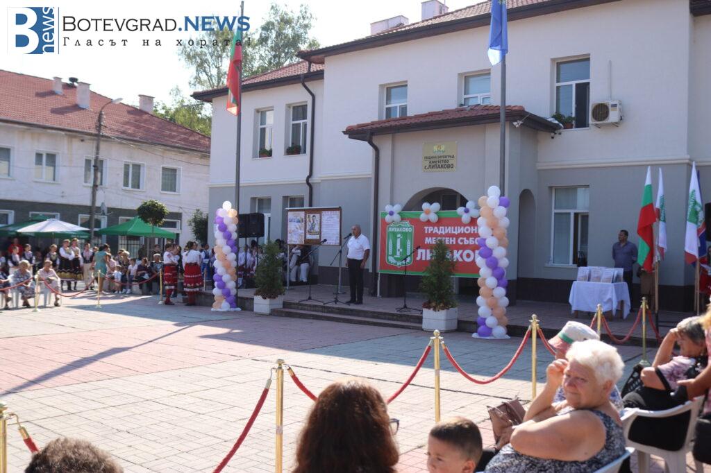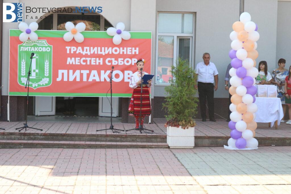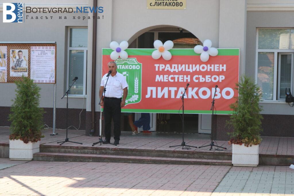 Думата бе дадена на кмета на село Литаково Пешо Младенов. „Скъпи приятели, за мен е чест и удоволствие да Ви поздравя по случай традиционния местен събор на нашето село. Този ден е един основателен повод всички ние да се обединим в любовта си към село Литаково и към неговите местни традиции. Отбелязването на такива празници показва, че българското село е живо. Нека всеки наш ден ни носи надежда и радост от сбъднатите мечти, настроение и упование за по-голям просперитет! Аз искам да благодаря на всички онези, които се трудиха неуморно, които се лишаваха от времето с близките си и загърбиха личния си интерес, работейки за една велика кауза, наречена Литаково. На вас и на вашите близки пожелавам здраве и щастие! Нека във всеки дом да има любов и разбирателство! Нека всяко наше действие води към заветната ни цел – просперитетът на село Литаково! Нека днес да се насладим на прекрасните изпълнения на нашите самодейни състави от гостуващите ни читалища, а по-късно и на хубавите песни на Здравко Мандаджиев! Честит събор, скъпи съселяни! Бъдете живи и здрави„, каза кметът Пешо Младенов към жителите на Литаково.