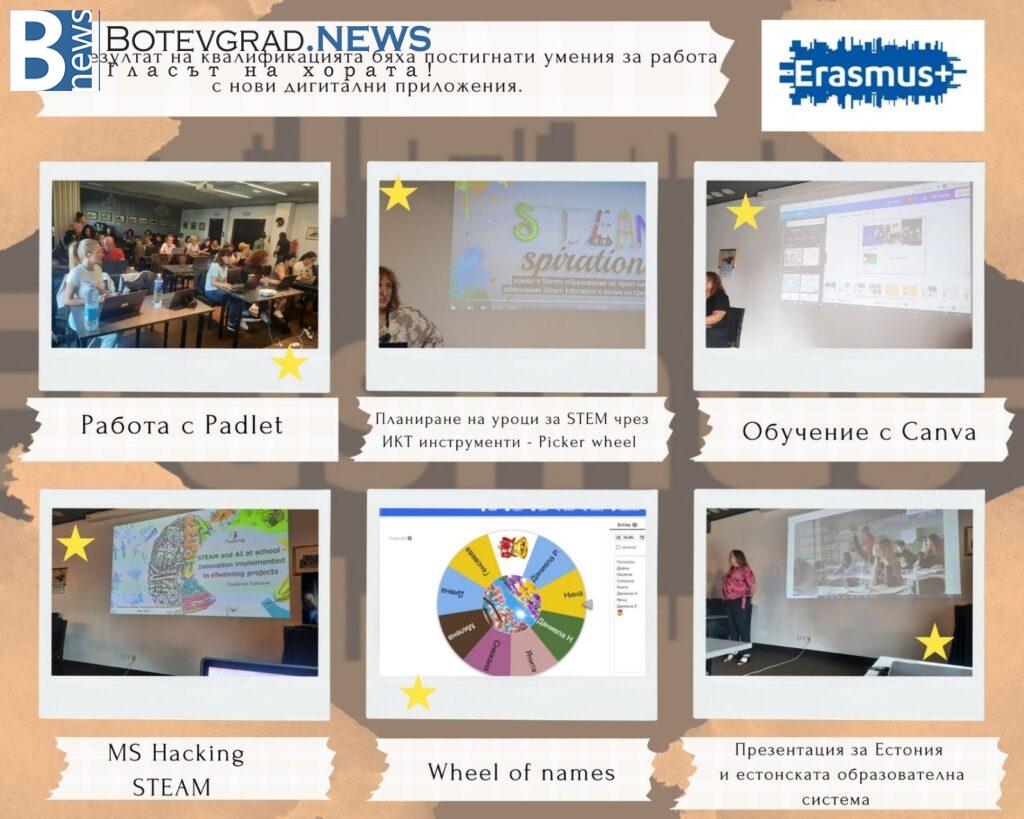 Обучението представи основните опорни точки при прилагане на STEAM и базови платформи за осъществяването на този вид обучение. С индивидуални и групови задачи се отчетоха резултатите и всеки участник получи сертификат.