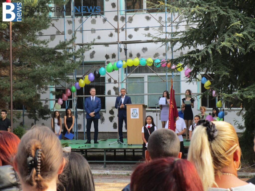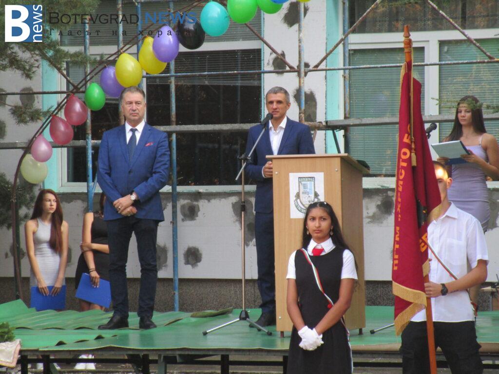 Пожелавам Ви през новата учебна година да сте предимно здрави, да сте вдъхновени, кметът обърна внимание на това, а и вие вече сте видяли, влизайки в училищния двор, че имаме ремонт в училището. Ремонт, който се надявам, ако времето позволи, да свърши в най-скоро време. Разбира се, ще имаме леки неудобства и за вас каот ученици и учители, но най-хубавото е, че ремонтът започна и той ще се случи. Ще имате нови класни стаи, ще имате санирано училище, ще имате реновиран физкултурен салон, ще имате асфалтиран двор и пространства, нова спортна хубава площадка, летен фитнес, нови работилници със сменена дограма и покриви, които ще бъдат реновирани, така че се надявам в най-скоро време, работи се на пълни обороти, ние наистина да имаме едно бляскаво училище и ще осатне само да го напълним със садържание, защото училището е за учене. Ако го направим от злато и няма успехи в учебния процес, то не сме си свършили работата, то няма да заслужаваме това училище.„, каза директорът Иван Николов и честити първият учебен ден.