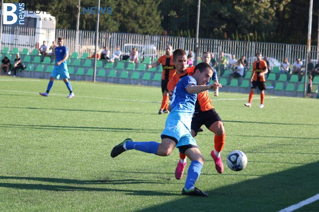 Домакините откриха резултата в 43-та минута с гол на Мирослав Янчев, който дойде след пробив от дясно.