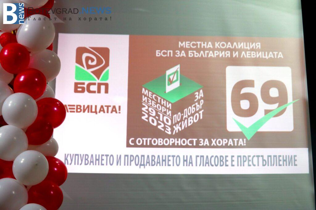 След него председателят на Общински съвет на БСП Ботевград, Николина Цолова, заяви, че кандидатите на местна коалиция „БСП за България и Левицата“ са един екип от хора професионалисти в своята област – инженери, лекари, икономисти, учители и един студент – най-младият в листата – Георги Данов. „Нашата листа за общински съветници е един екип от млади и по-опитни хора, всички до един обаче тръгват в предизборната битка с чисти намерения и с желание заедно с избирателите да напипат пулса на истинските решения на проблемите, а те както знаете се решават чрез непрекъснати срещи с хората не само по време на избори. Гласувайки ни доверие вярвам, че ние ще оправдаем вашите очаквания, като направим така, че проблемите в населените места да са по-малко, а резултатите да са видими. Затова гласувайте с разум за бюлетина номер 69“, призова партийният лидер.
