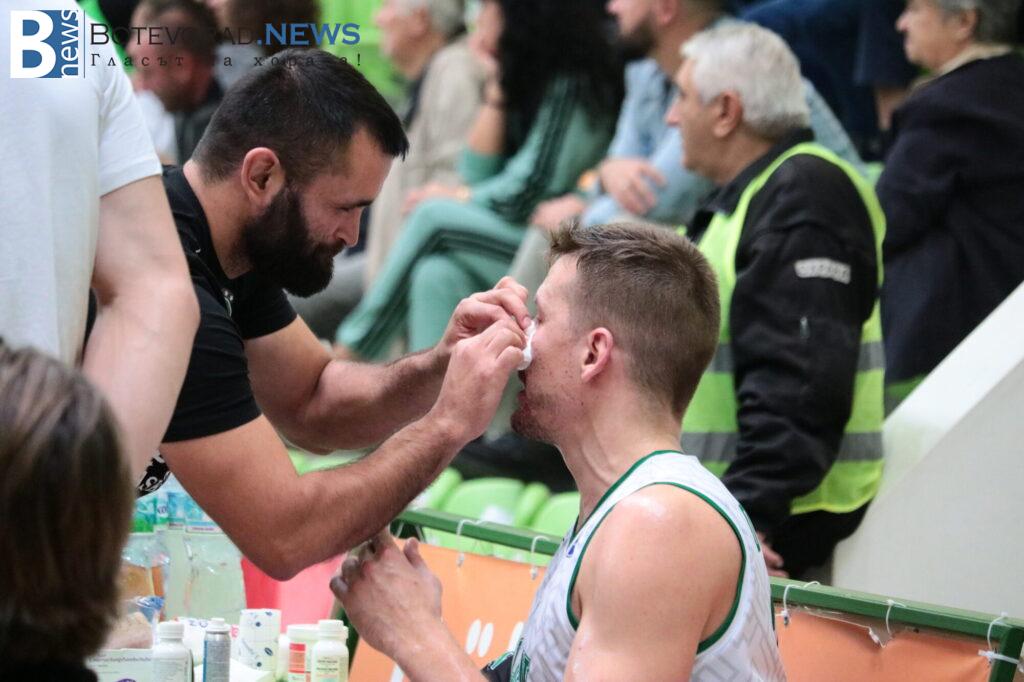 Баскетболистите на Петър Златанович си върнаха водачеството още в началото на втория период, който стартира сравнително равностойно. Много бързо те взеха инициативата и на почивката се откъснаха с 51:33 след 12 вкарани тройки само за първото полувреме срещу нито една за опонента си.